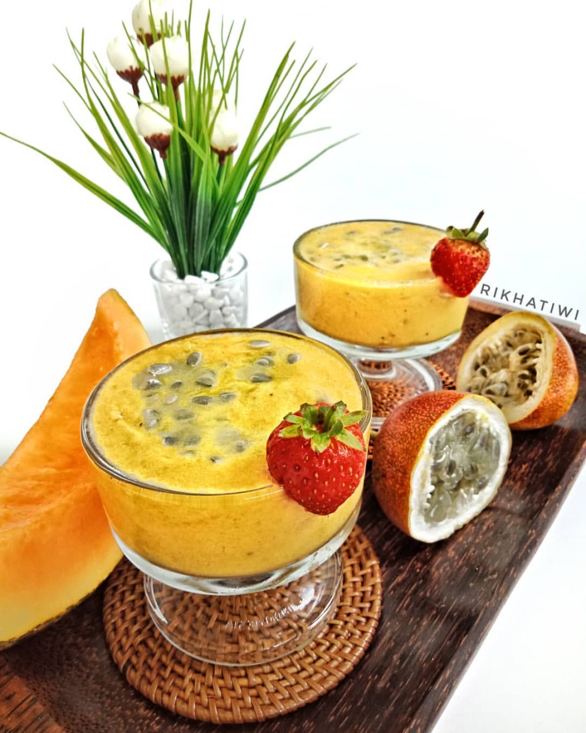 Selamat mencoba membuat smoothies blewah markisa ini di rumah ya! Semoga bermanfaat dan menambah semangat berbuka puasa kita semua.