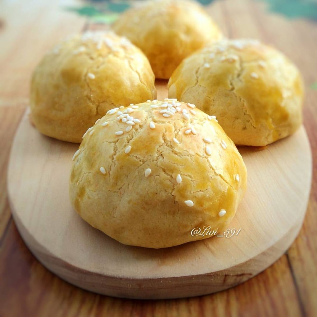 - Panggang dalam oven dengan suhu 180°C selama 20-30 menit, tergantung pada oven masing-masing, sampai berwarna keemasan.