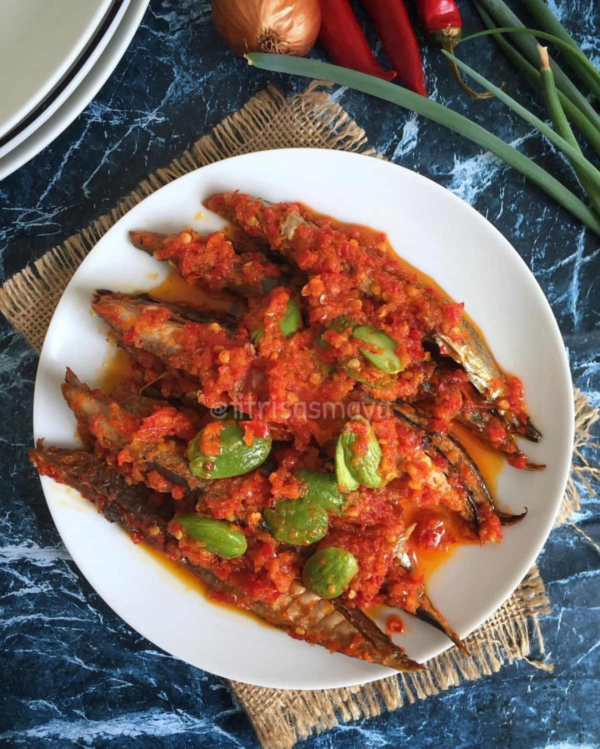 - Tambahkan sedikit air, gula, dan garam. Masak sampai bumbu meresap ke dalam ikan. Di langkah ini, kamu juga bisa menambahkan petai jika mau, dan masak sampai matang.
