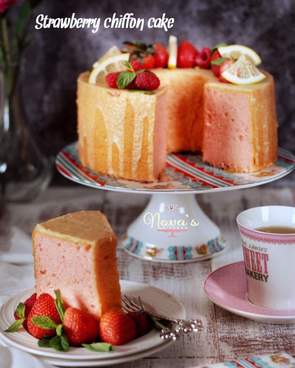 Chiffon cake sebenarnya berasal dari Amerika Serikat, dan mulai populer pada tahun 1920-an. Kue ini dikenal karena teksturnya yang lembut dan berbusa, yang dihasilkan dari penggunaan minyak dan teknik pencampuran yang tepat. Dalam variasi ini, ditambah dengan rasa strawberry yang manis dan segar, membuatnya semakin menarik untuk dinikmati. Kue chiffon sering disajikan dalam acara-acara spesial, seperti ulang tahun, perayaan, atau sekedar berkumpul bersama keluarga. Dengan menggunakan pasta strawberry, kue ini juga menghadirkan elemen keindahan dan warna yang ceria.