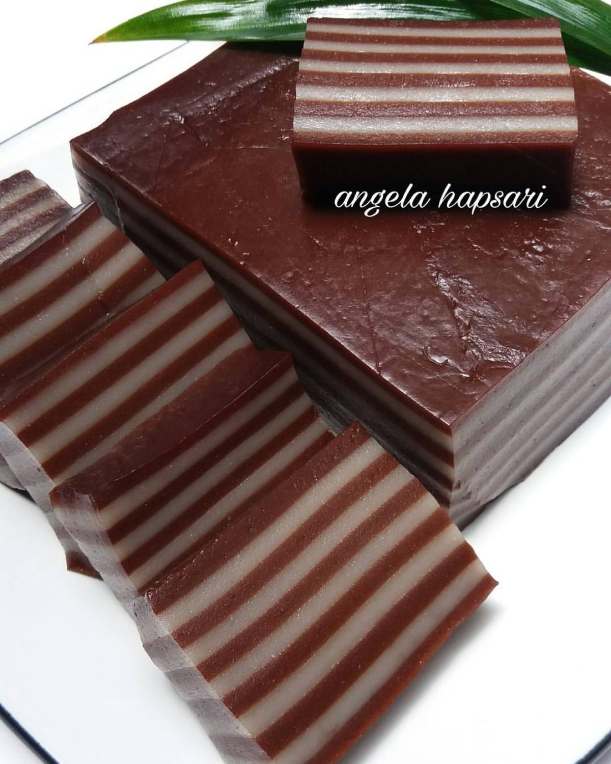 - Setelah loyang cukup panas, tuangkan adonan selapis demi selapis secara bergantian antara adonan putih dan coklat. Kukus setiap lapisan selama 5 menit hingga adonan habis. Pada lapisan terakhir, kukus selama 25 menit hingga matang.