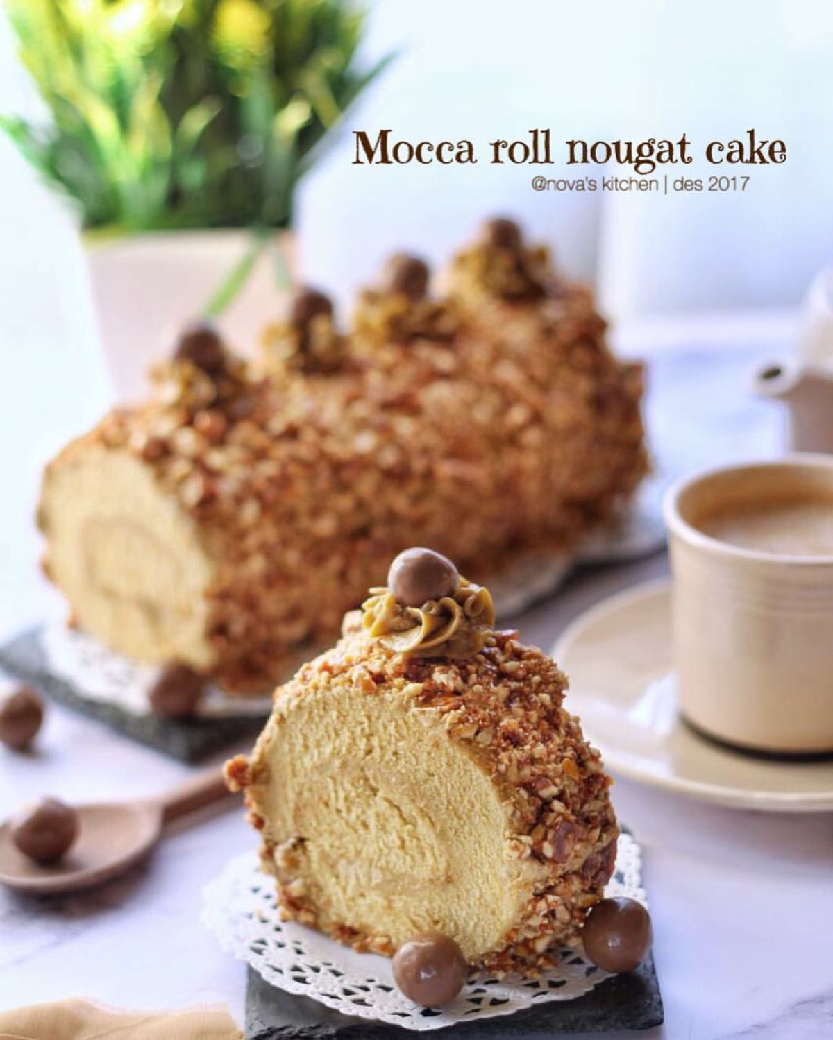 Kue Gulung Mocca Nougat ini berasal dari adaptasi kue gulung yang populer di berbagai budaya, di mana kue gulung sering kali diisi dengan berbagai jenis krim atau selai. Kue ini tidak hanya lezat tetapi juga menggugah selera, cocok disajikan pada perayaan ulang tahun atau acara spesial.