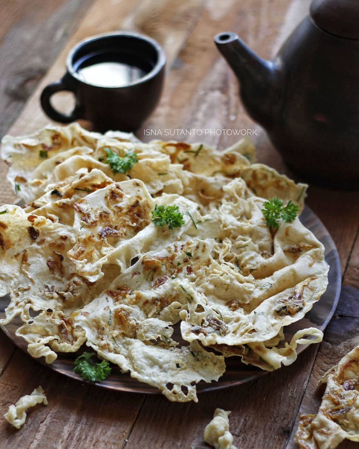- Panaskan minyak dalam wajan dengan api sedang. Ambil satu sendok sayur adonan, beri sedikit rebon di atasnya.