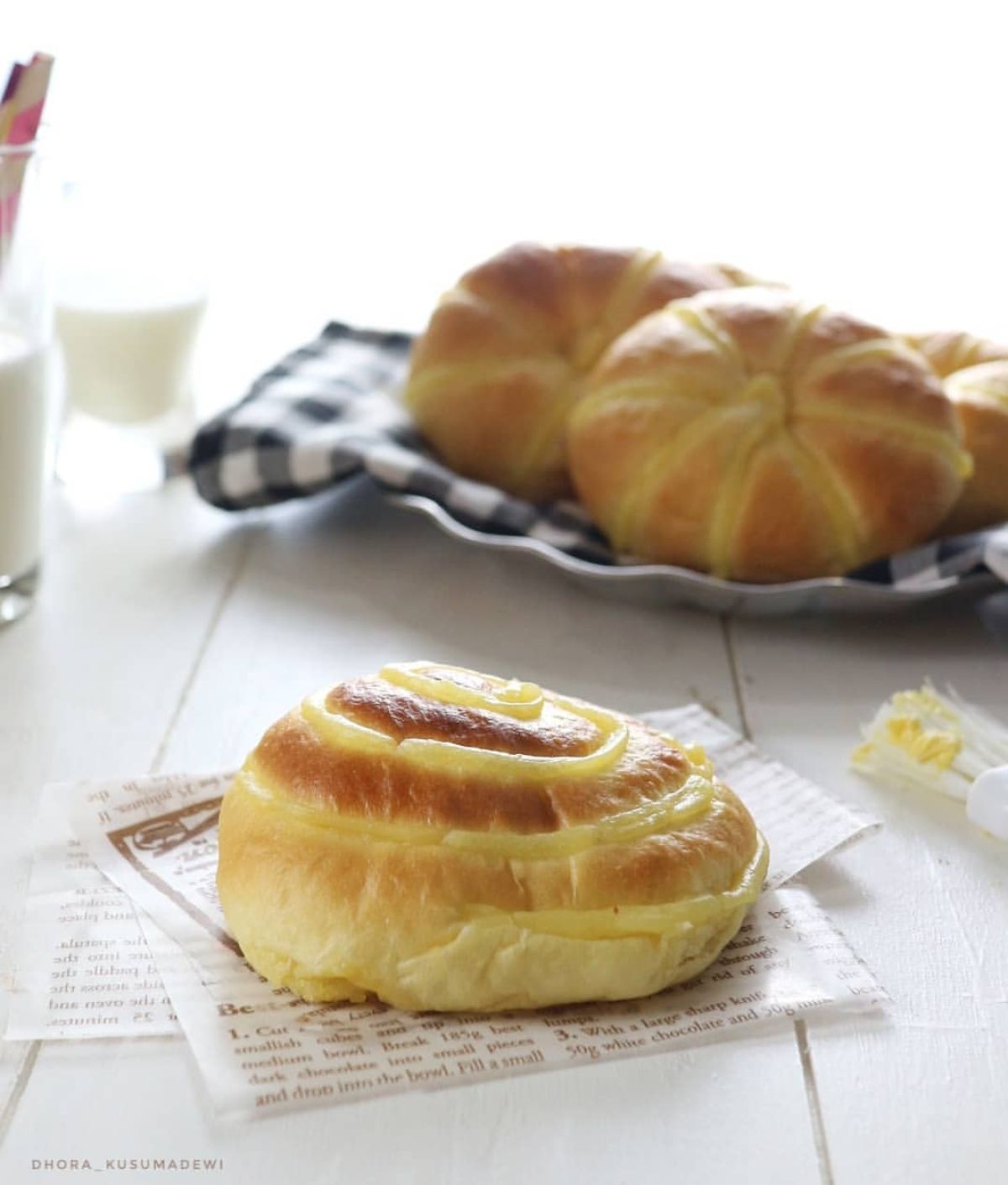 - Panggang selama 15 menit hingga permukaan roti kecoklatan. Setelah matang, angkat dan oleskan butter/margarin di permukaannya saat masih panas.