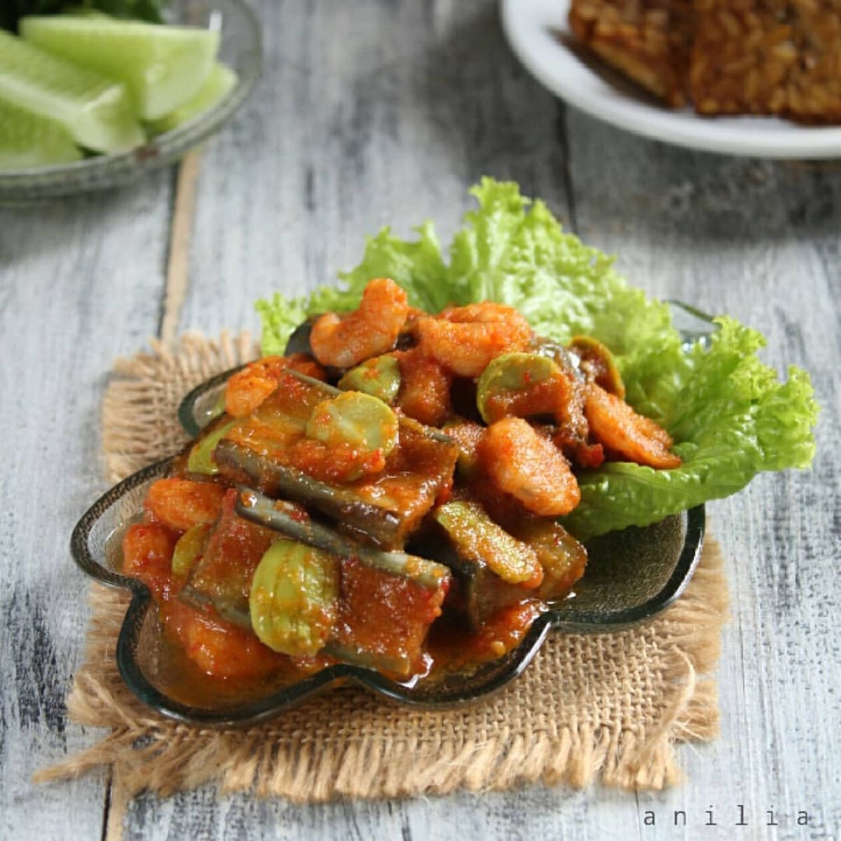 - Setelah bumbu harum, masukkan lengkuas geprek, kemudian tambahkan udang dan pete. Aduk hingga udang berubah warna.