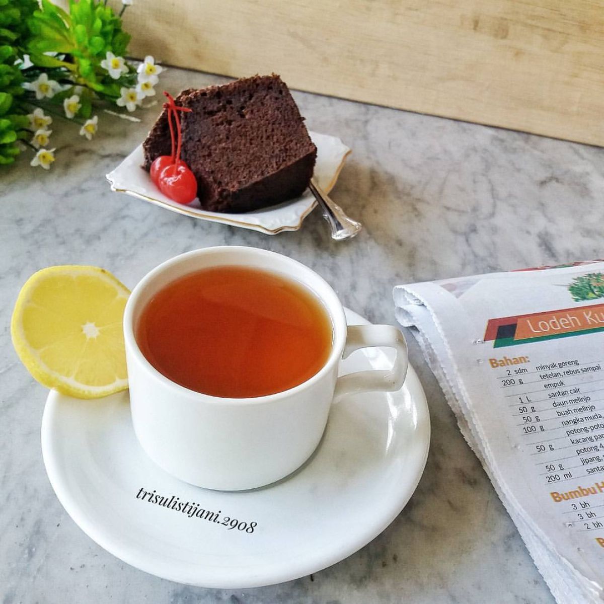 - Setelah teh siap, angkat kantong teh dan tambahkan air lemon yang sudah diperas.