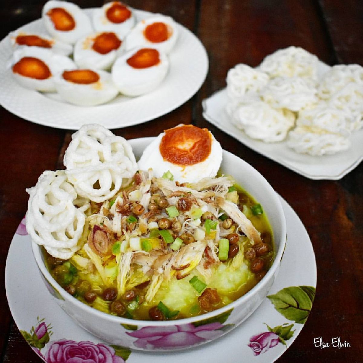 - Sajikan bubur dengan suwir ayam, kuah kuning, serta pelengkap seperti kecap dan sambal sesuai selera.