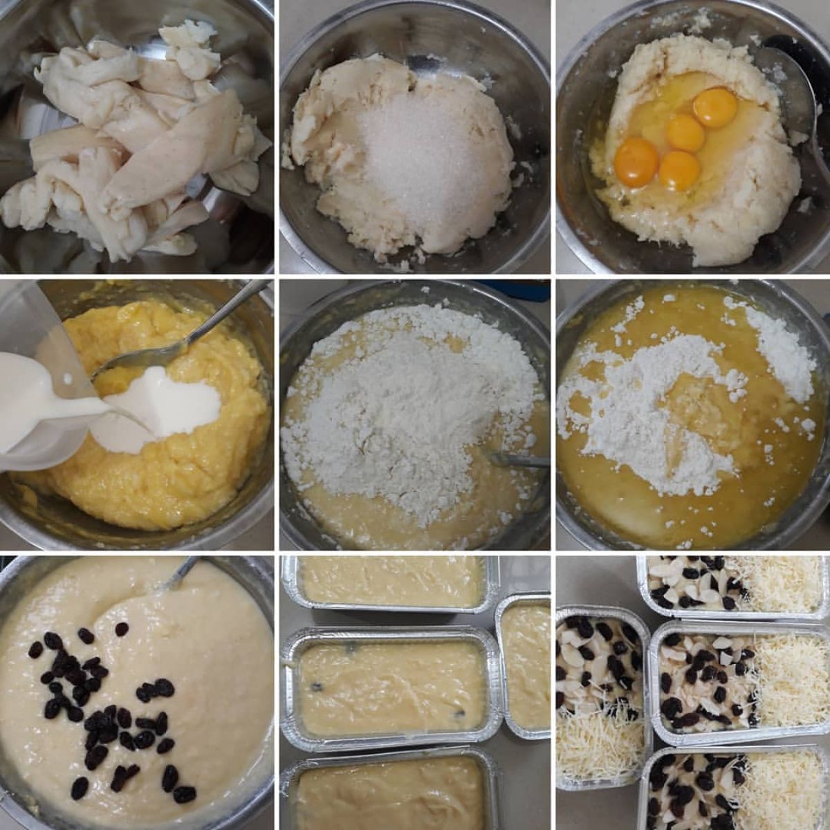 - Tuang adonan ke dalam cup alumunium. Kemudian, beri topping di atasnya dengan keju, kismis, dan almond sesuai selera.