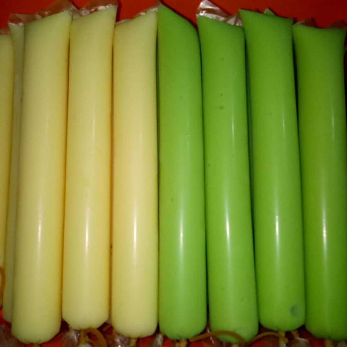 - Setelah semua bahan halus, tuangkan adonan es ke dalam plastik. Ikat rapat-rapat untuk mencegah cairan keluar.