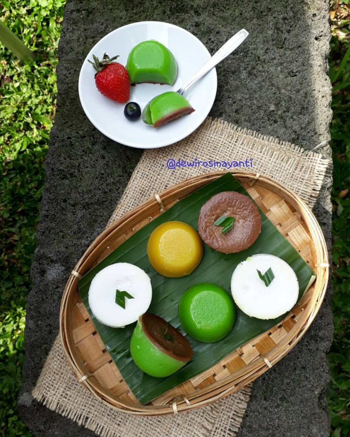 - Setelah matang, biarkan dingin sebelum dikeluarkan dari cetakan agar lapisannya tidak keriput. Pastikan suhu api saat mengukus tidak terlalu besar agar kue tetap cantik.