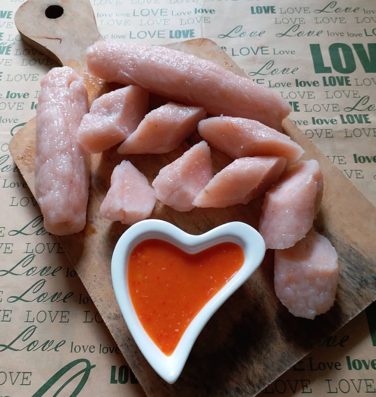 - Siapkan talenan yang telah ditaburi dengan sagu. Bentuk adonan menjadi bulatan atau silinder sesuai selera.