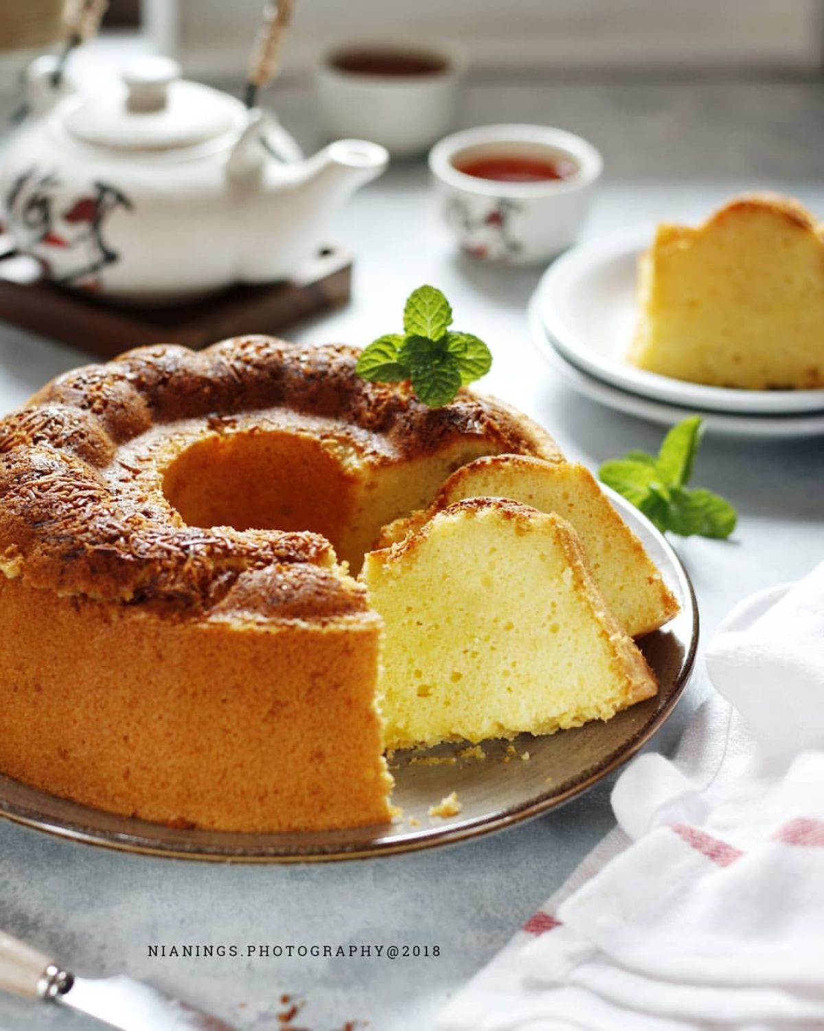 - Siapkan loyang tulban berdiameter 20 cm. Olesi permukaannya dengan margarin dan taburi sedikit tepung agar kue tidak lengket.