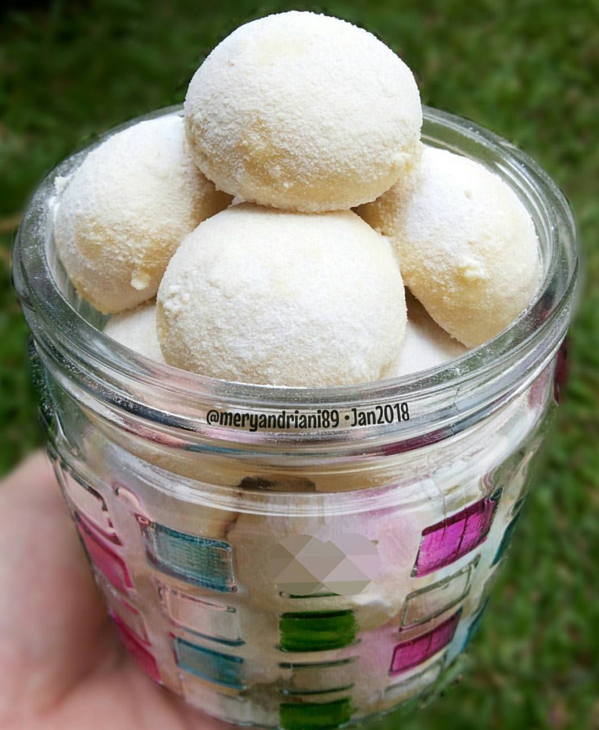 - Setelah dikeluarkan dari oven dan masih dalam keadaan hangat, gulingkan kue ke dalam gula halus hingga rata, lalu gulingkan lagi ke dalam gula donat. Biarkan dingin sebelum disimpan di toples kedap udara.
