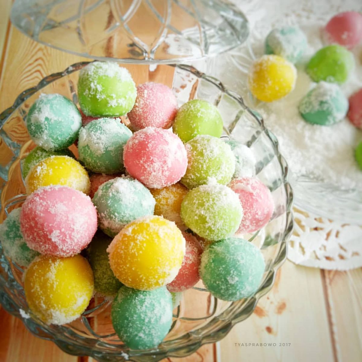 - Pewarna dan Bentuk: Bagi adonan menjadi beberapa bagian, beri pewarna makanan sesuai selera. Setelah itu, bentuk adonan menjadi bulatan kecil-kecil.