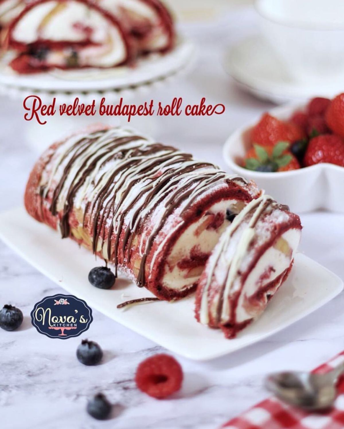 Red Velvet Cake memiliki sejarah yang kaya dan berakar dari tradisi kue yang berasal dari Amerika Serikat. Kue ini terkenal karena warna merahnya yang khas dan sering disajikan pada acara-acara spesial. Budapest Roll Cake ini menggabungkan elemen dari kue gulung Eropa dengan rasa dan penampilan yang modern, membuatnya jadi pilihan yang menarik.