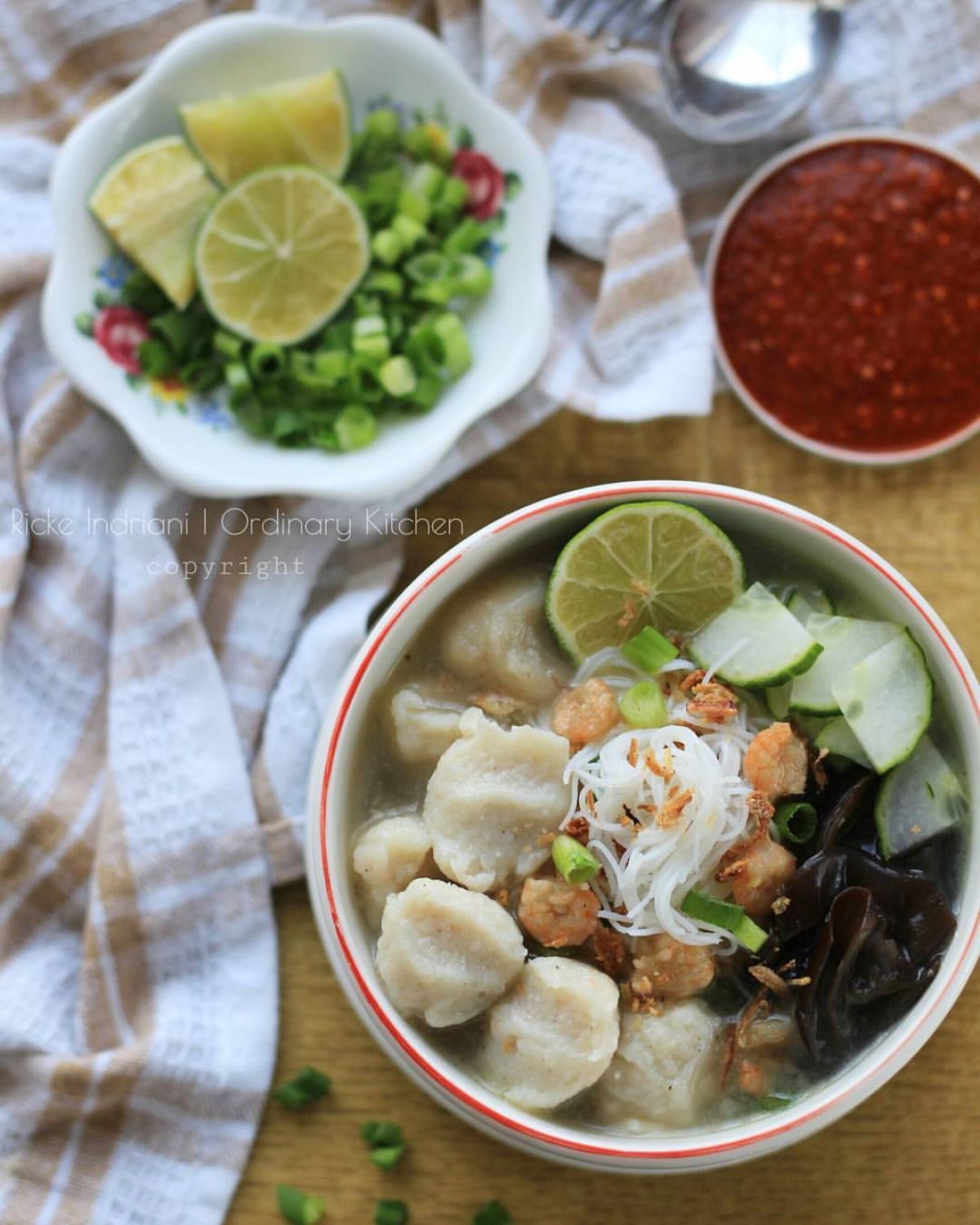 - Sajikan tekwan bersama kuah panas dan pelengkapnya seperti sohun, daun bawang, dan sambal rawit.