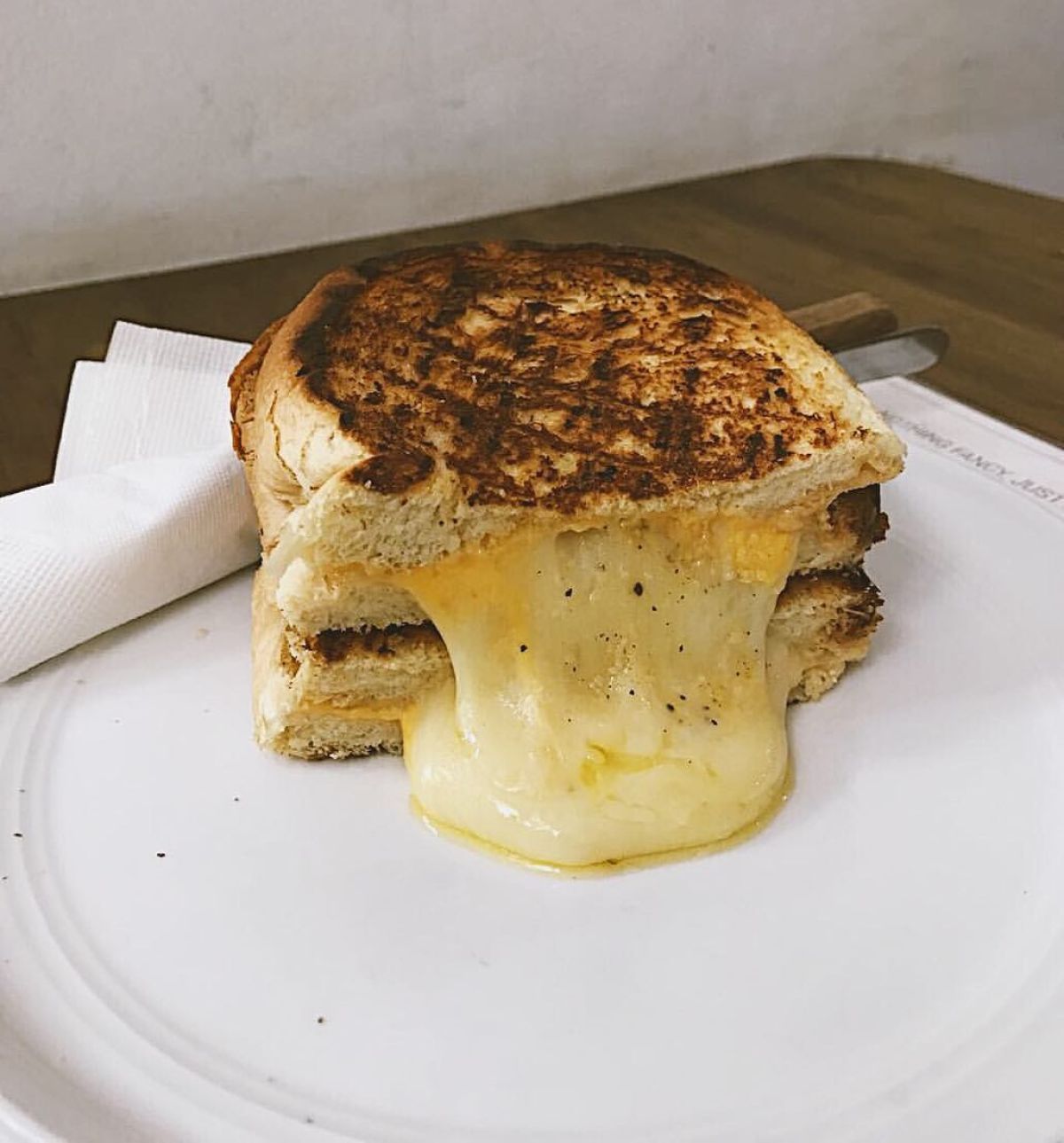 - TEKAN perlahan dengan spatula. Panggang selama 3-4 menit sampai roti berwarna kecokelatan. Balikkan roti dengan hati-hati dan panggang sisi satunya lagi hingga keju meleleh dan roti berwarna kecokelatan.