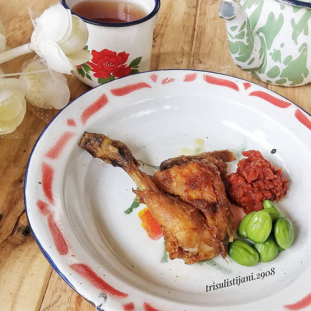 Ayam goreng lengkuas siap disajikan! Nikmati dengan sambal terasi dan lalap petai. Mengenai asal-usulnya, ayam goreng ini merupakan masakan favorit banyak orang di Indonesia, terutama di daerah Jawa. Bumbu lengkuas dan serai membuat rasa ayam semakin kaya dan menggugah selera.