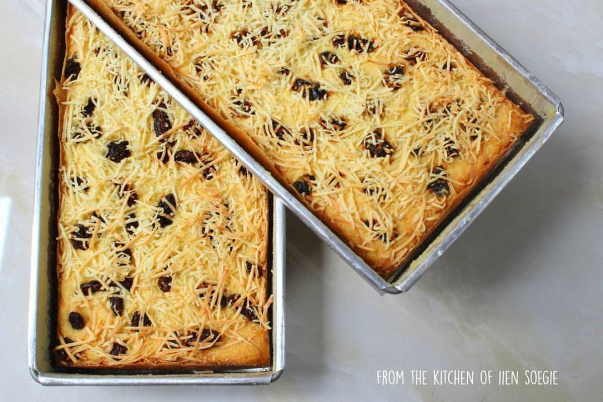 - Tuang adonan ke dalam loyang bundar berukuran 24 cm atau bagi menjadi dua loyang berukuran 30 x 10 x 4 cm dan satu loyang berukuran 24 x 10 x 4 cm.