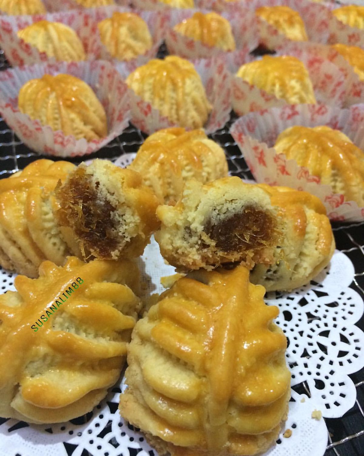 - Masukkan kembali ke dalam oven dan panggang lagi hingga berwarna keemasan. Biarkan dingin sebelum disajikan!