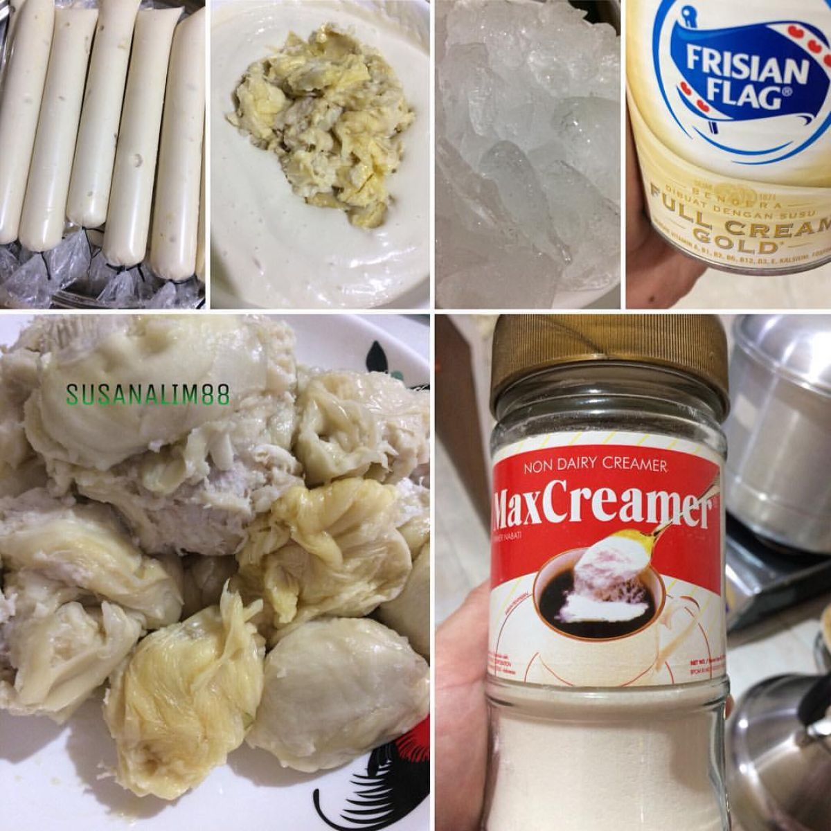 - Siapkan semua bahan di atas. Pastikan durian yang digunakan matang agar rasa lebih manis dan creamy.
