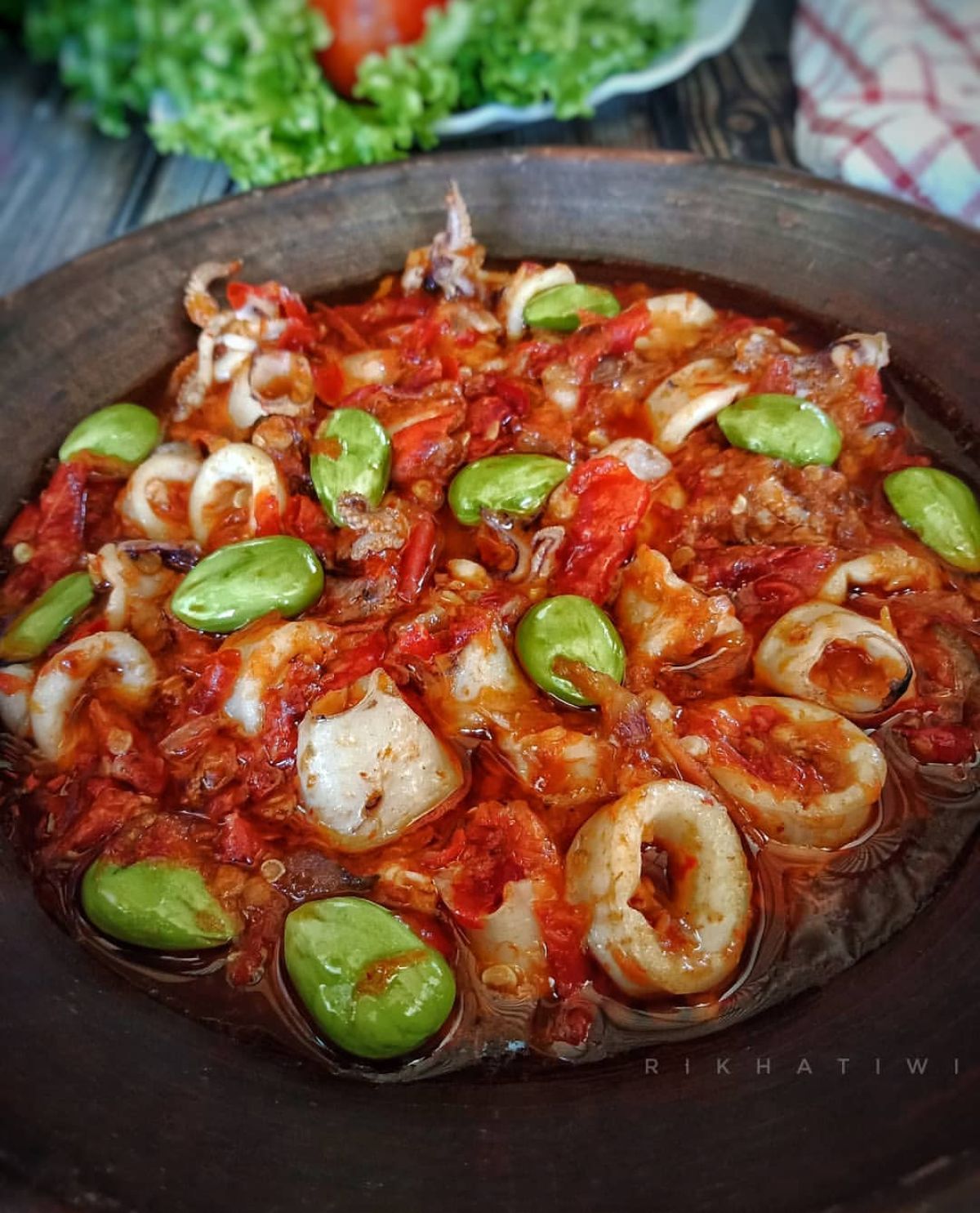 - Masukkan cumi ke dalam wajan. Masak selama 5 menit agar cumi matang dan bumbu meresap dengan baik.