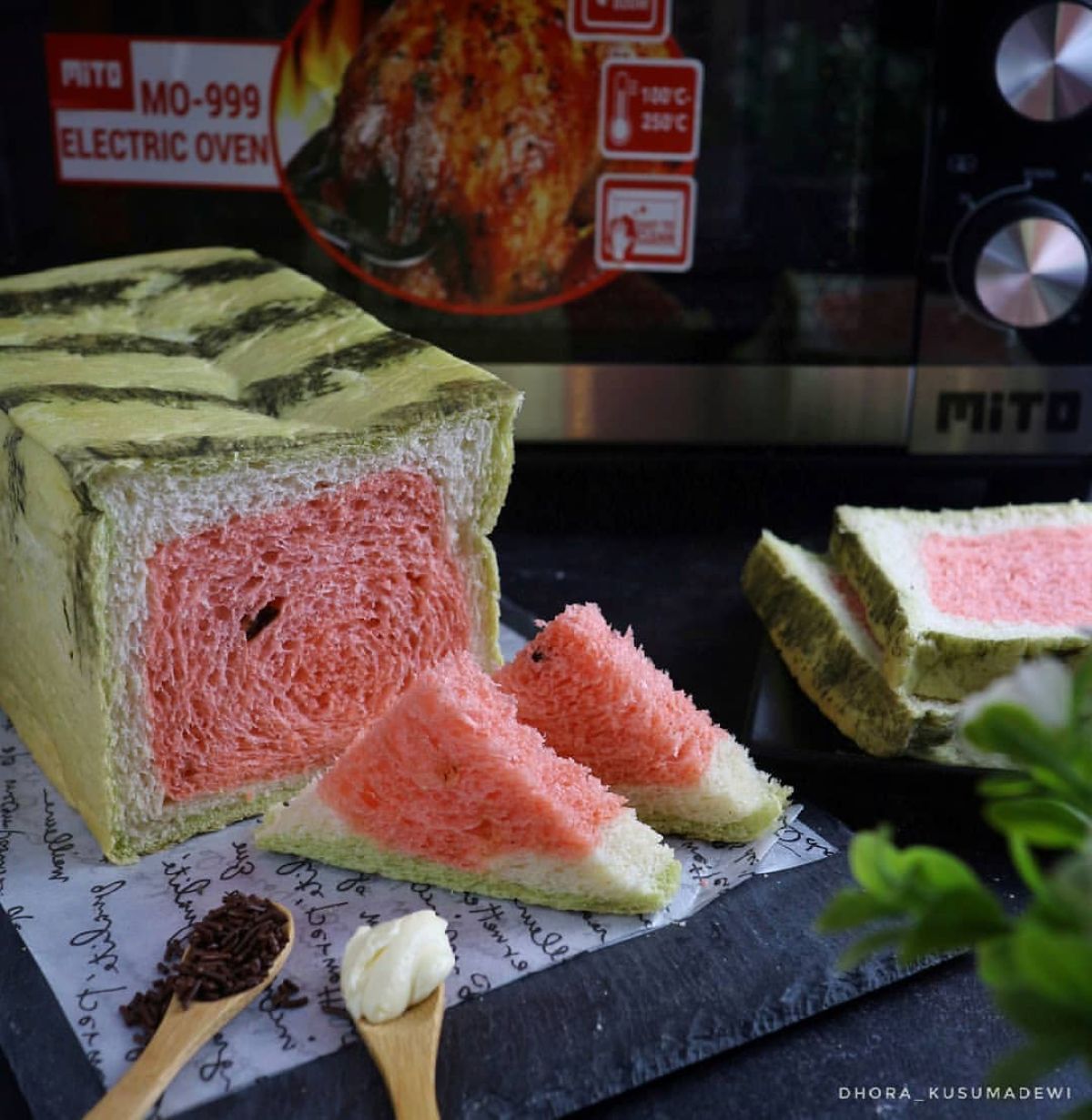 Roti tawar ini terinspirasi dari bentuk semangka, yang merupakan salah satu buah favorit di Indonesia. Roti ini tidak hanya menjadi sajian yang menarik, tetapi juga kaya nilai gizi karena menggunakan bahan alami.