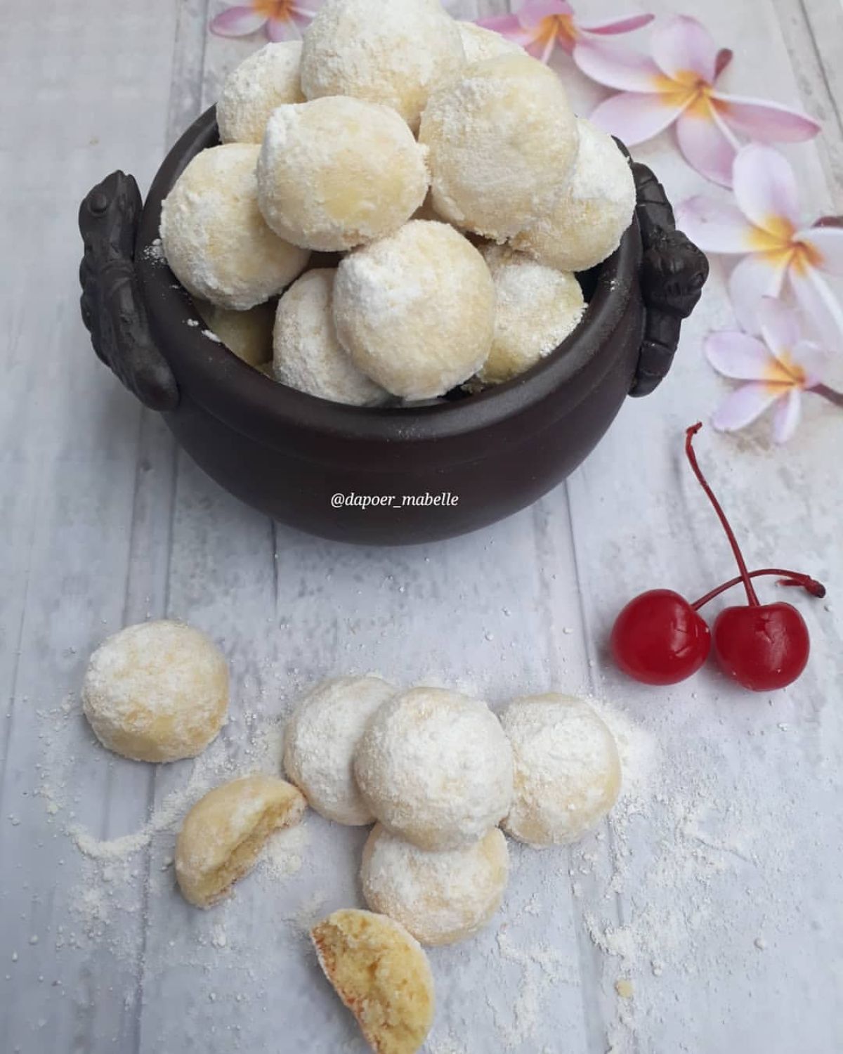 - Setelah matang, keluarkan kue dari oven. Selagi masih panas, gulingkan kue dalam gula halus. Hal ini penting agar gula menempel sempurna pada kue.