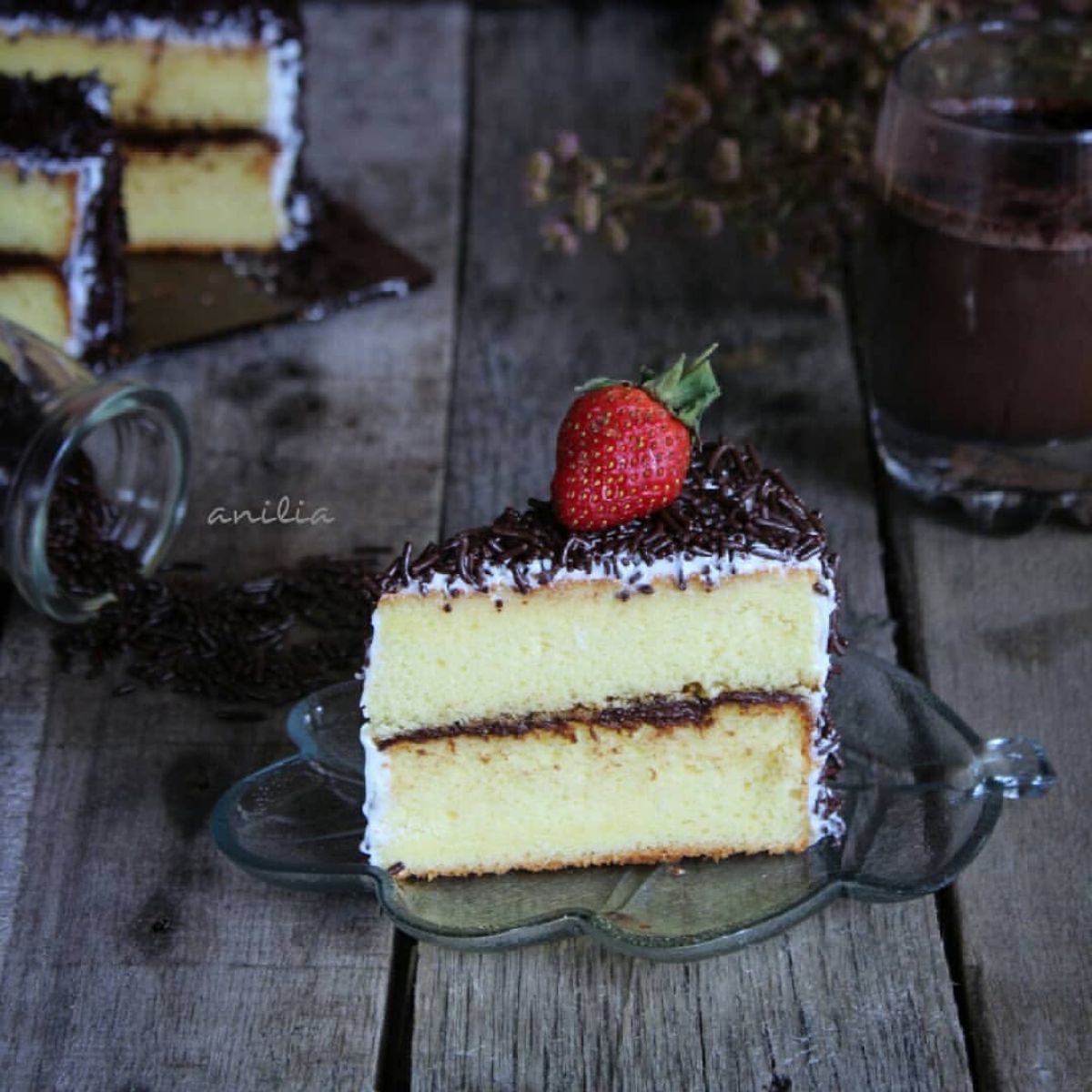 - Setelah matang, keluarkan bolu dari cetakan dan biarkan dingin hingga mencapai suhu ruang. Setelah itu, oleskan buttercream di atasnya.
