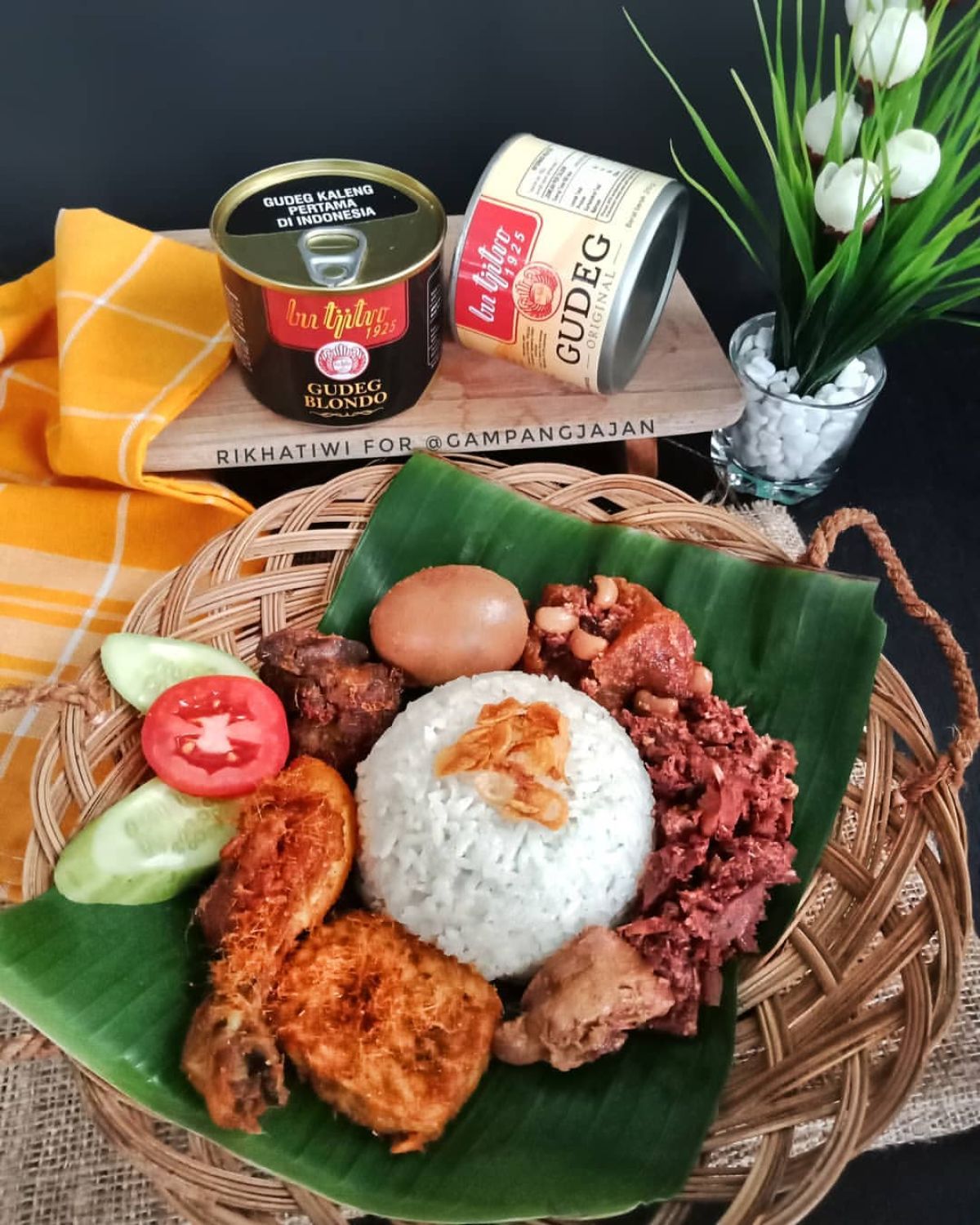 Gudeg adalah masakan tradisional asal Yogyakarta yang terbuat dari nangka muda yang dimasak dalam santan dan berbagai rempah. Makanan ini biasanya disajikan dengan nasi, telur, dan lauk-pauk lainnya. Dikenal dengan cita rasanya yang khas, gudeg sekarang tersedia dalam kemasan kaleng yang praktis, seperti dari @gampangjajan. Mari kita coba resep Gudeg Kalengan ini!