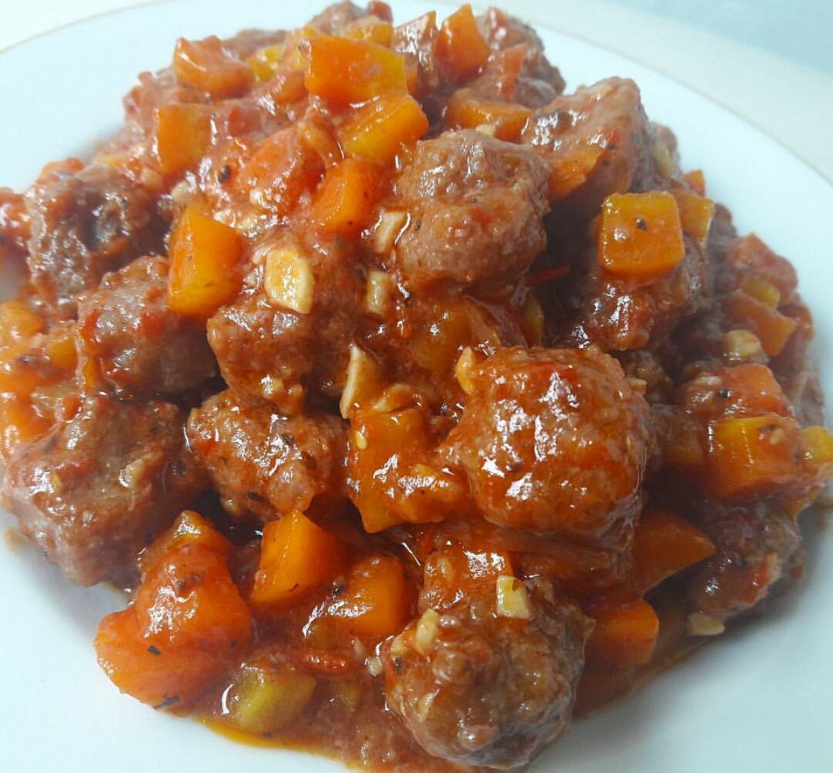 Setelah saus matang, letakkan bola-bola daging di atas piring dan siram dengan saus tomat. Hidangan siap disajikan!