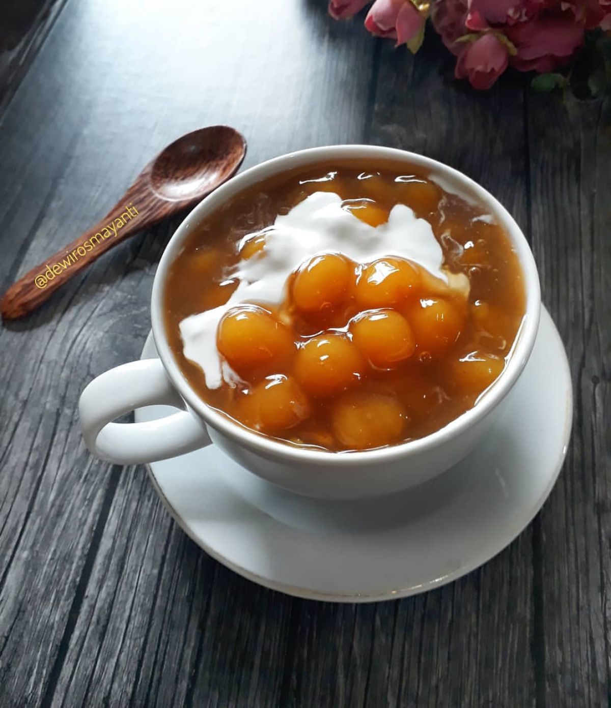 - Masukkan biji salak yang sudah direbus ke dalam kuah. Aduk rata.
