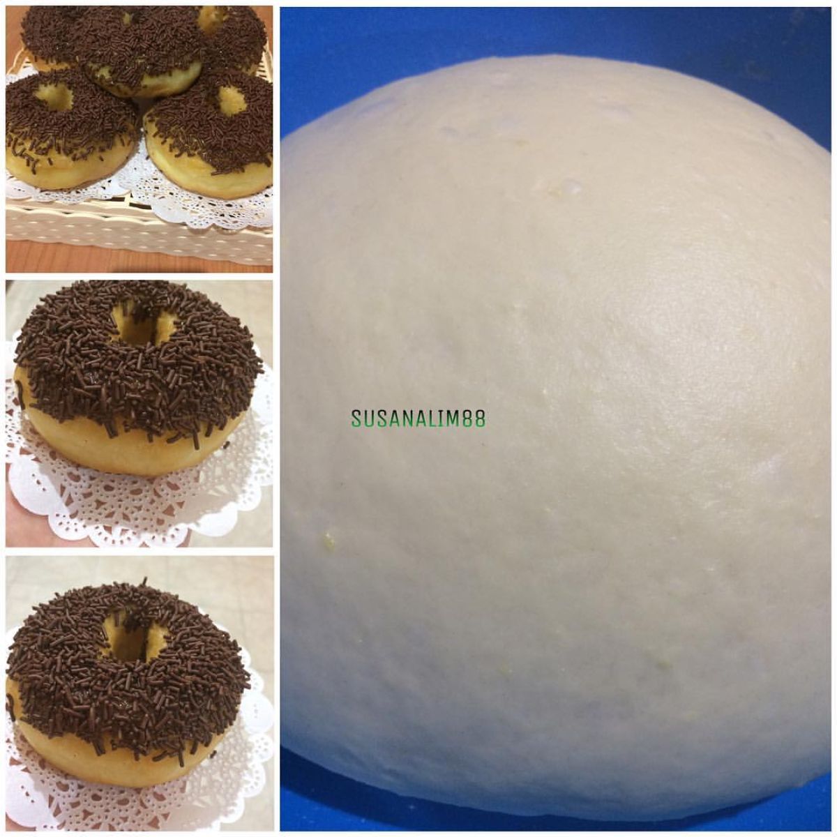 - Letakkan donat yang sudah dibentuk dalam wadah yang ditutup dengan kertas dan ditaburi sedikit tepung. Biarkan mengembang lagi.