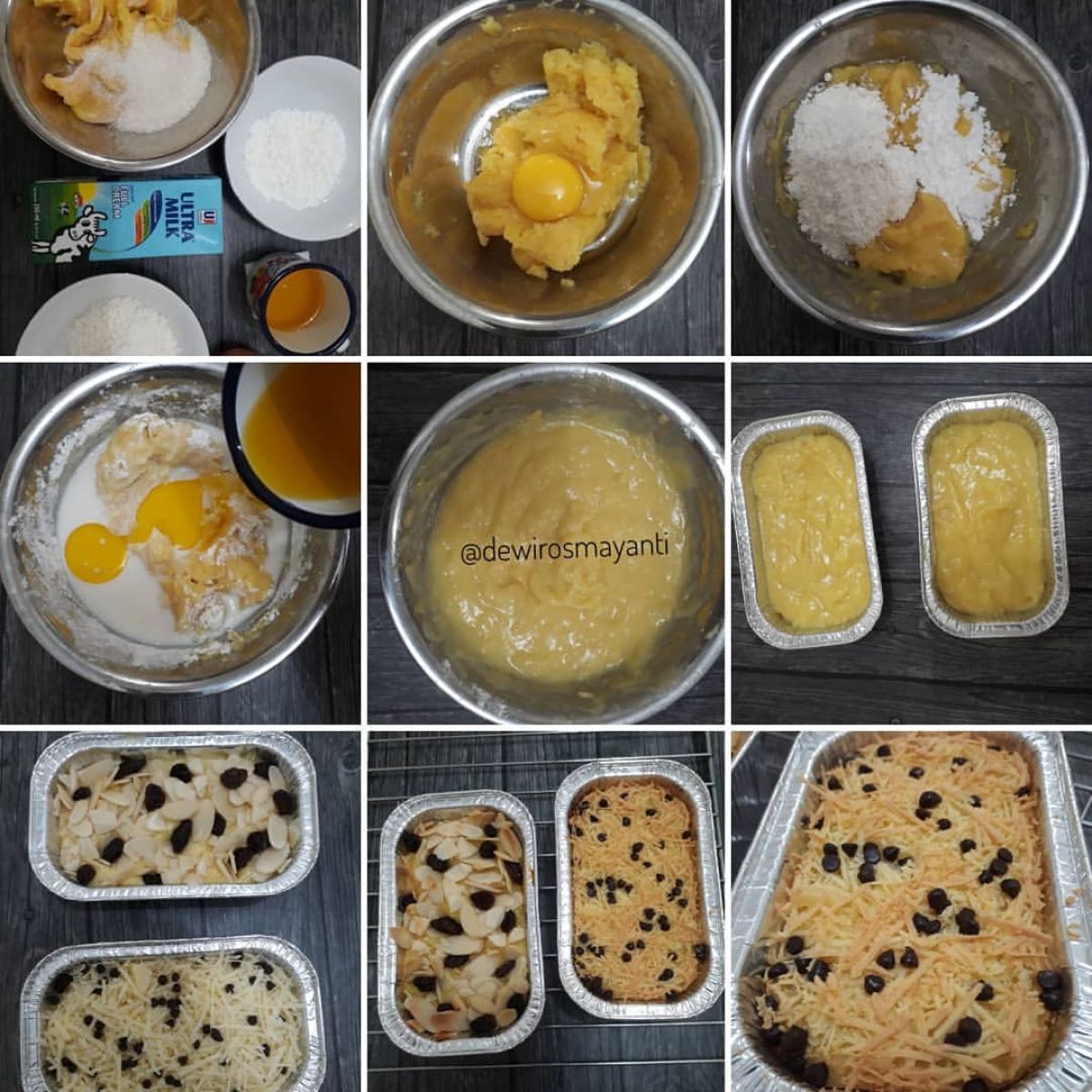 - Keju, kismis, dan almond (sebagai topping)