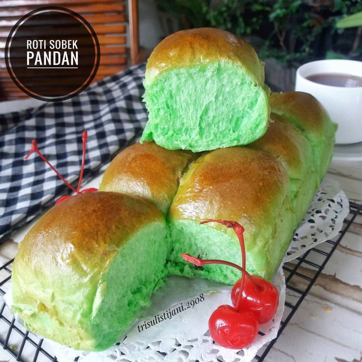 Roti Sobek Pandan siap dinikmati! Roti ini khas Indonesia dengan karakteristik lembut, wangi, dan enak. Cocok untuk sarapan ataupun makanan ringan. Selamat mencoba!