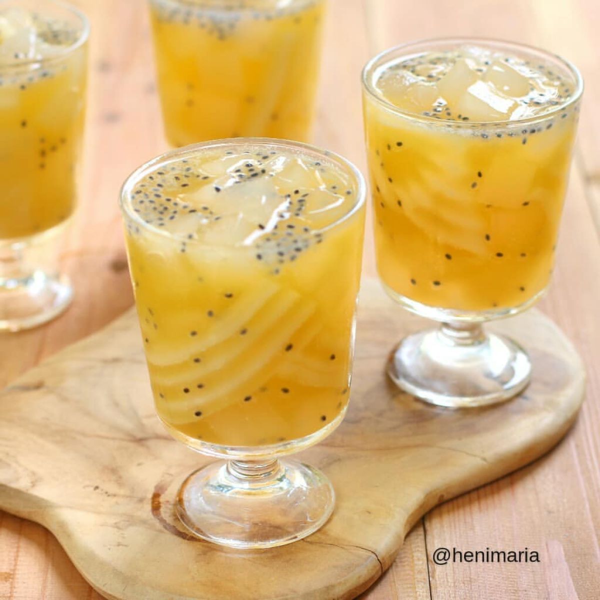 - Setelah dingin, sajikan dalam gelas. Untuk tambahan kesegaran, kamu bisa tambahkan es batu atau sedikit sprite.