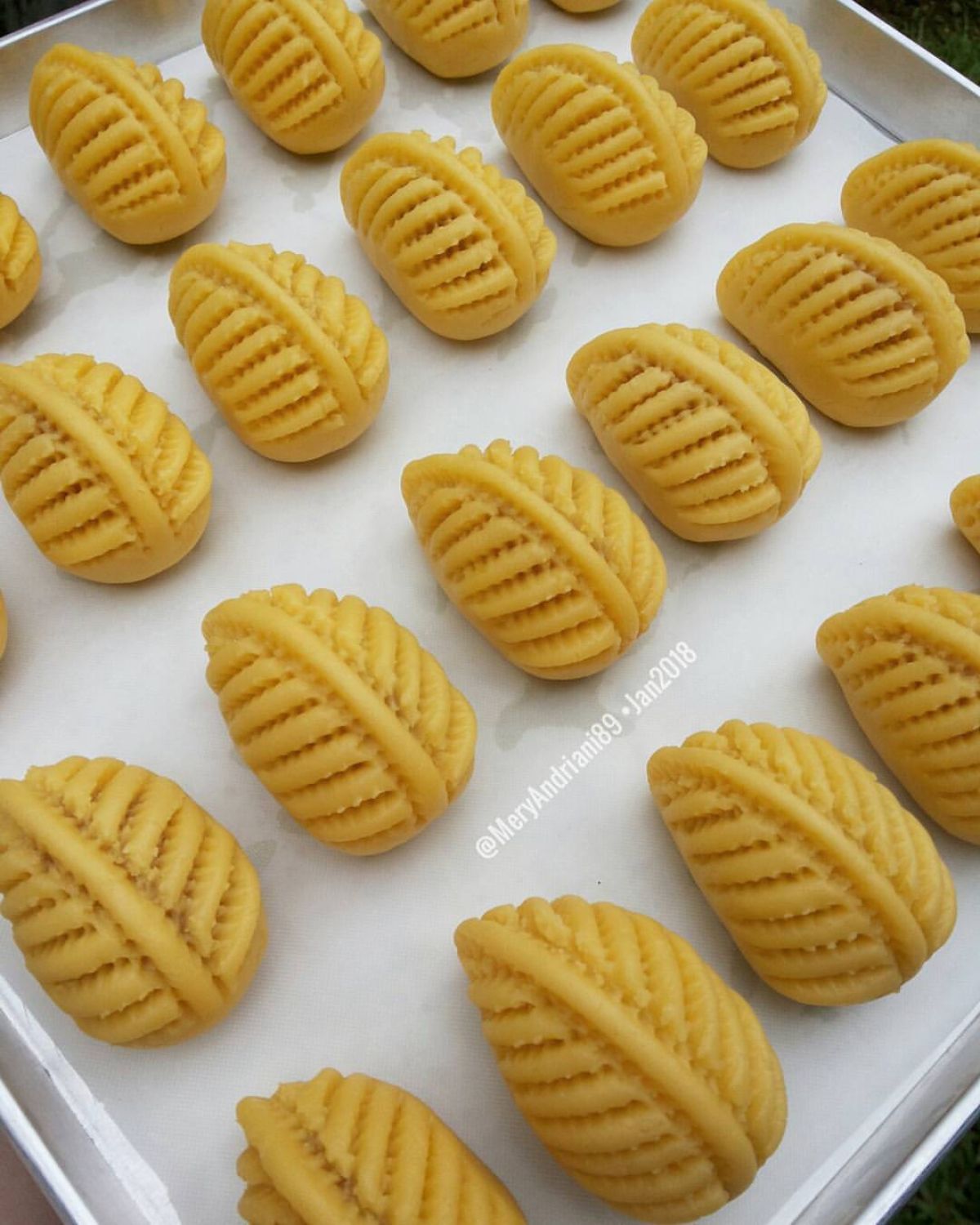- Panggang dalam oven yang sudah dipanaskan pada suhu 150°C selama 20-25 menit atau sampai berwarna kecokelatan.