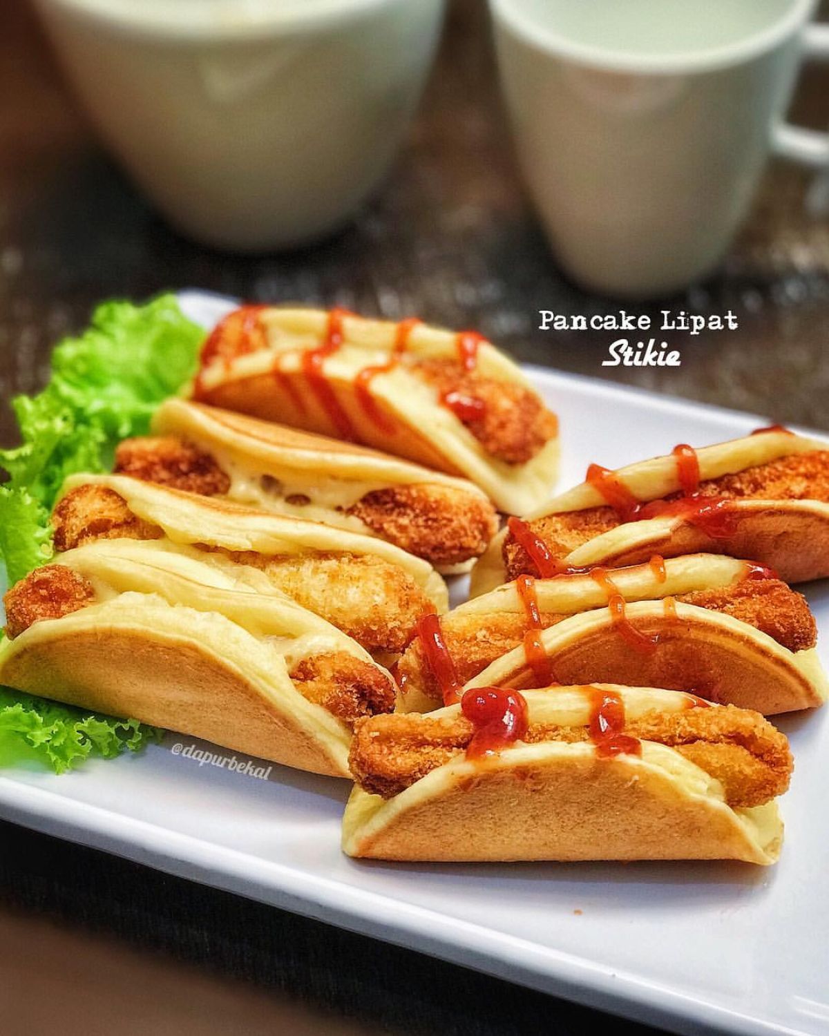 - Sajikan: Sajikan pancake lipat stikie dengan saus, sambal, atau mayo sesuai selera. Selamat menikmati!