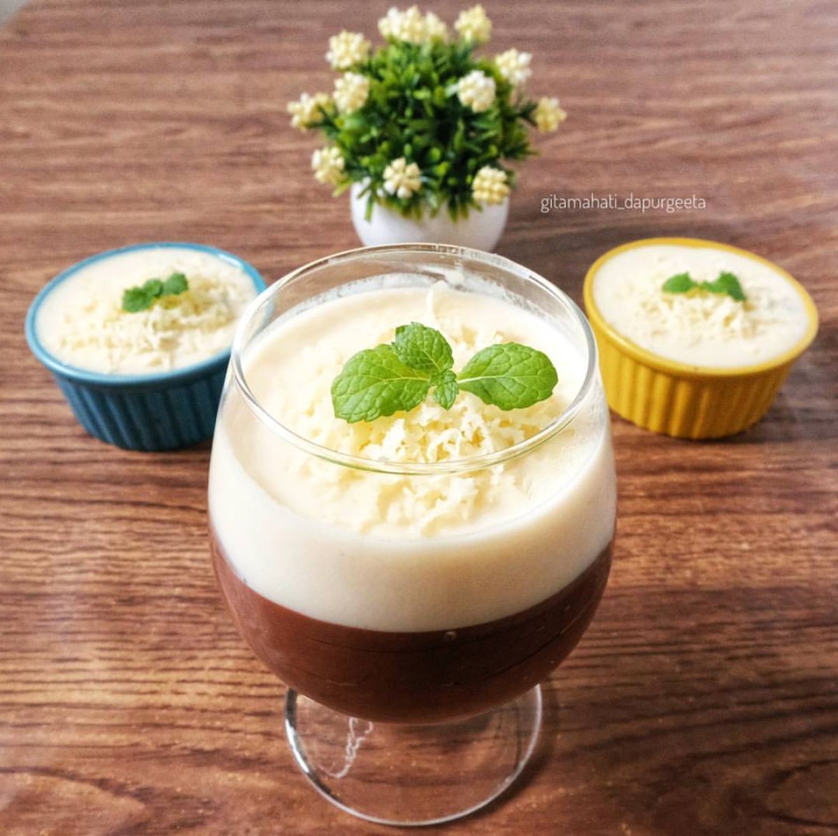 - Setelah puding coklat dingin, tuangkan campuran keju di atas puding tersebut. Taburi dengan sisa keju parut untuk menambah rasa.