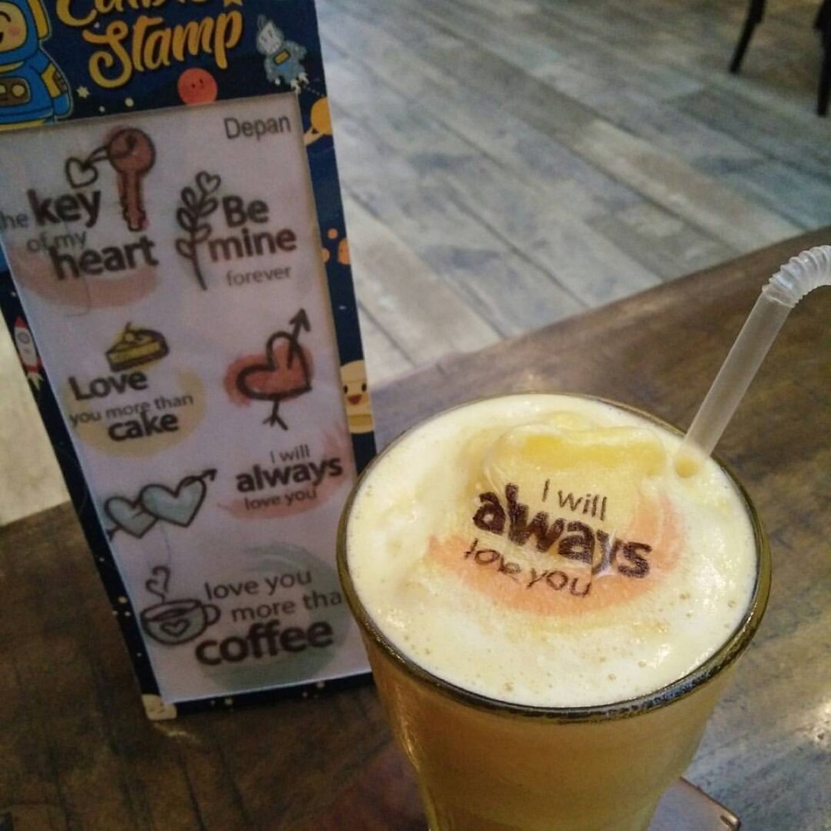 - Tempelkan Stempel: Setelah dicetak, tempelkan stempel di atas minuman seperti susu, kopi, atau es krim. Kamu bisa menggunakan uang satria untuk menempelkan dengan baik.