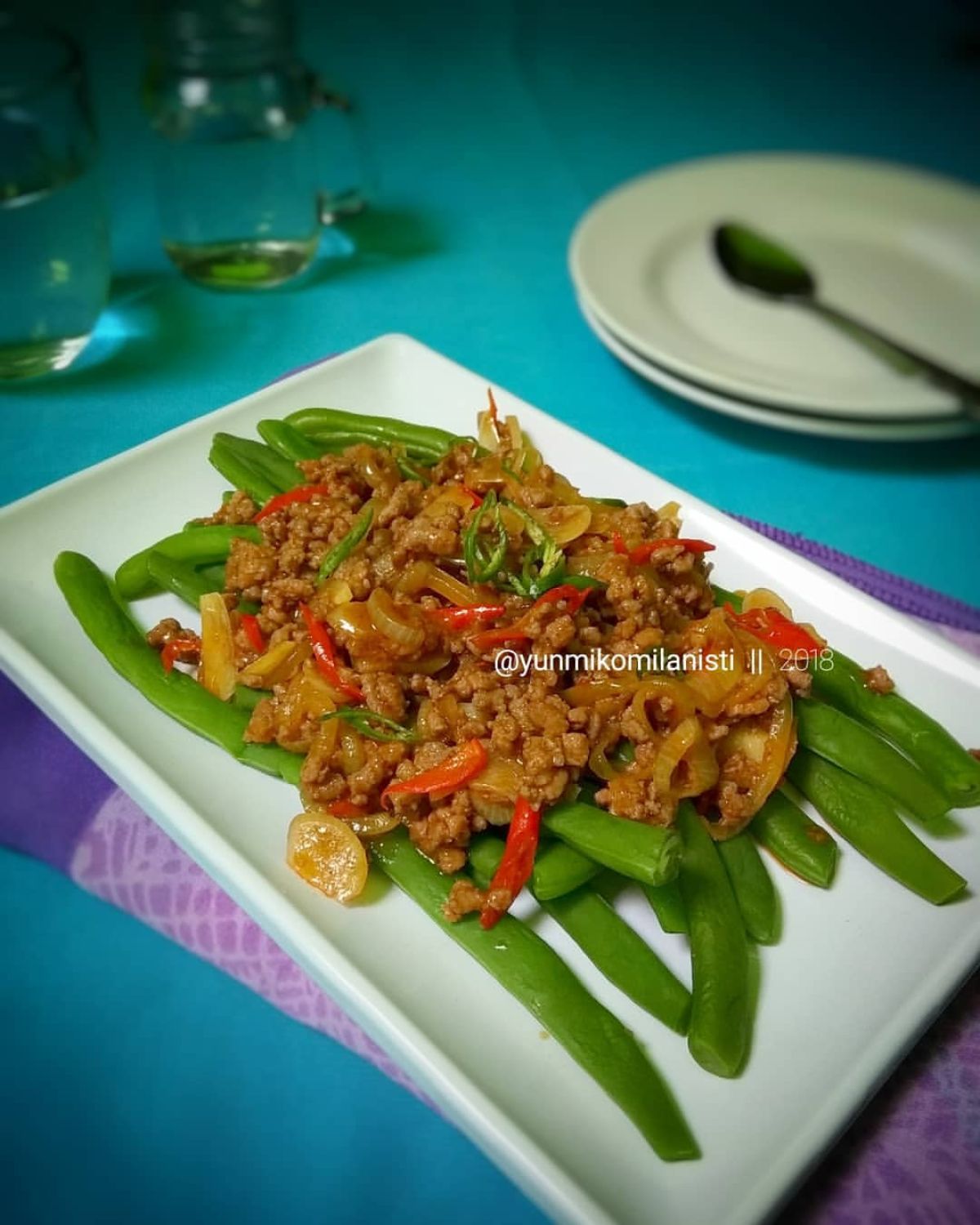 Untuk menyajikannya, tata buncis di piring saji, lalu tuang daging giling yang sudah dimasak di atasnya. Sajikan selagi hangat!
