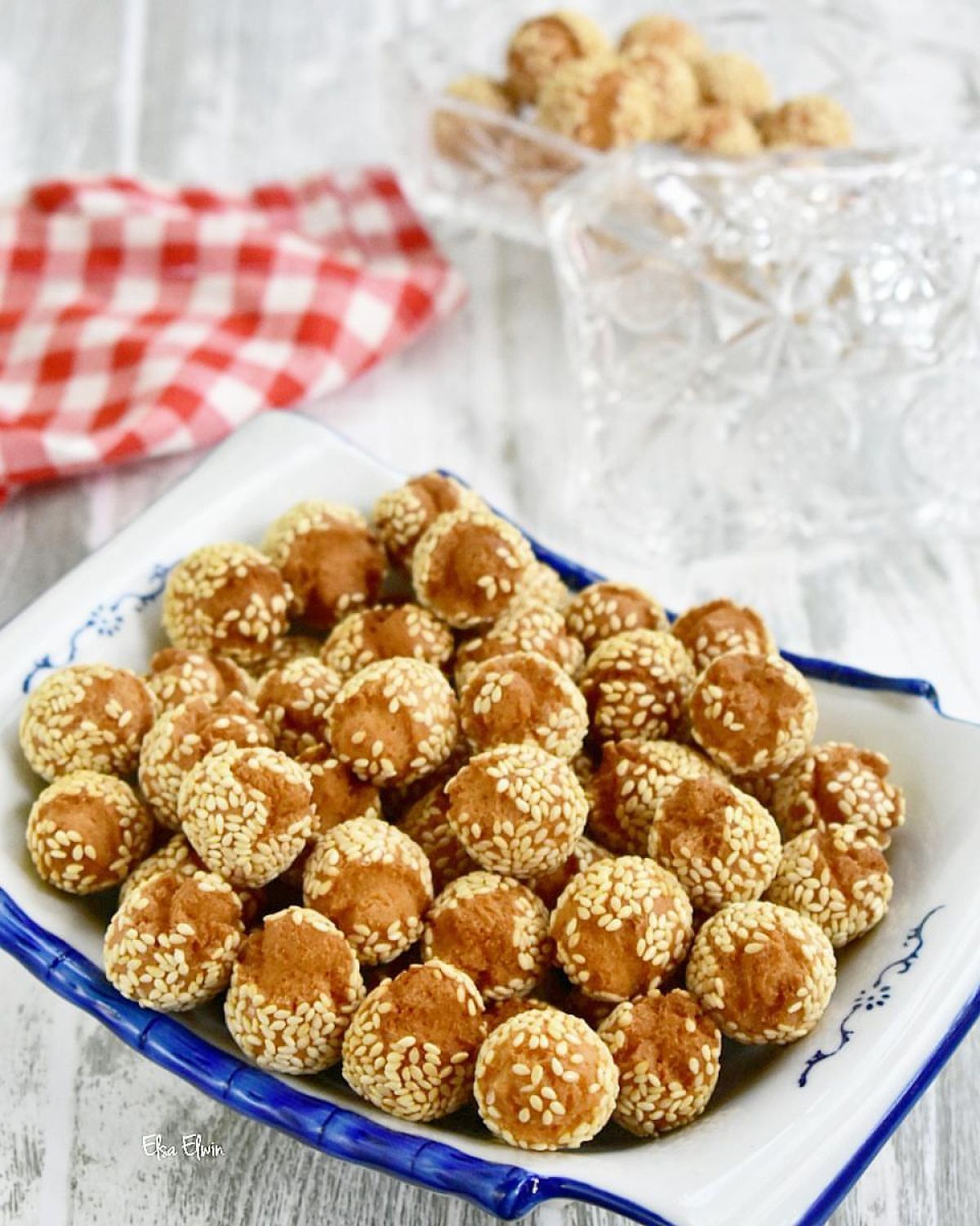 - Bentuk adonan menjadi bulat kecil-kecil. Gulingkan bulatan adonan di atas wijen hingga terlapisi dengan baik. Lakukan sampai adonan habis.