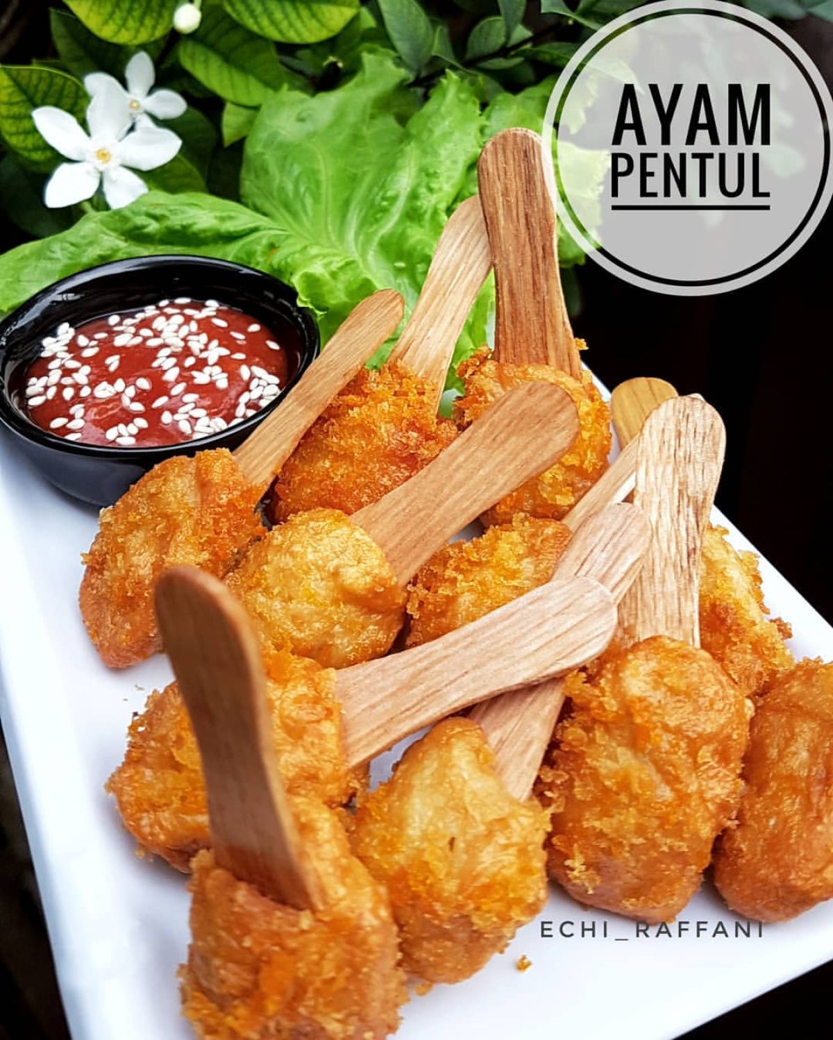 Ayam Pentul adalah makanan yang umum ditemukan di Indonesia, terutama sebagai camilan atau bekal. Biasanya, hidangan ini terbuat dari daging ayam yang digiling halus dengan berbagai bumbu, lalu dibentuk bulat dan dipanaskan. Hidangan ini bisa disajikan dengan berbagai cara, seperti dikukus atau digoreng. Penggunaan ayam sebagai bahan utama memberikan banyak manfaat, seperti protein tinggi dan rendah lemak.