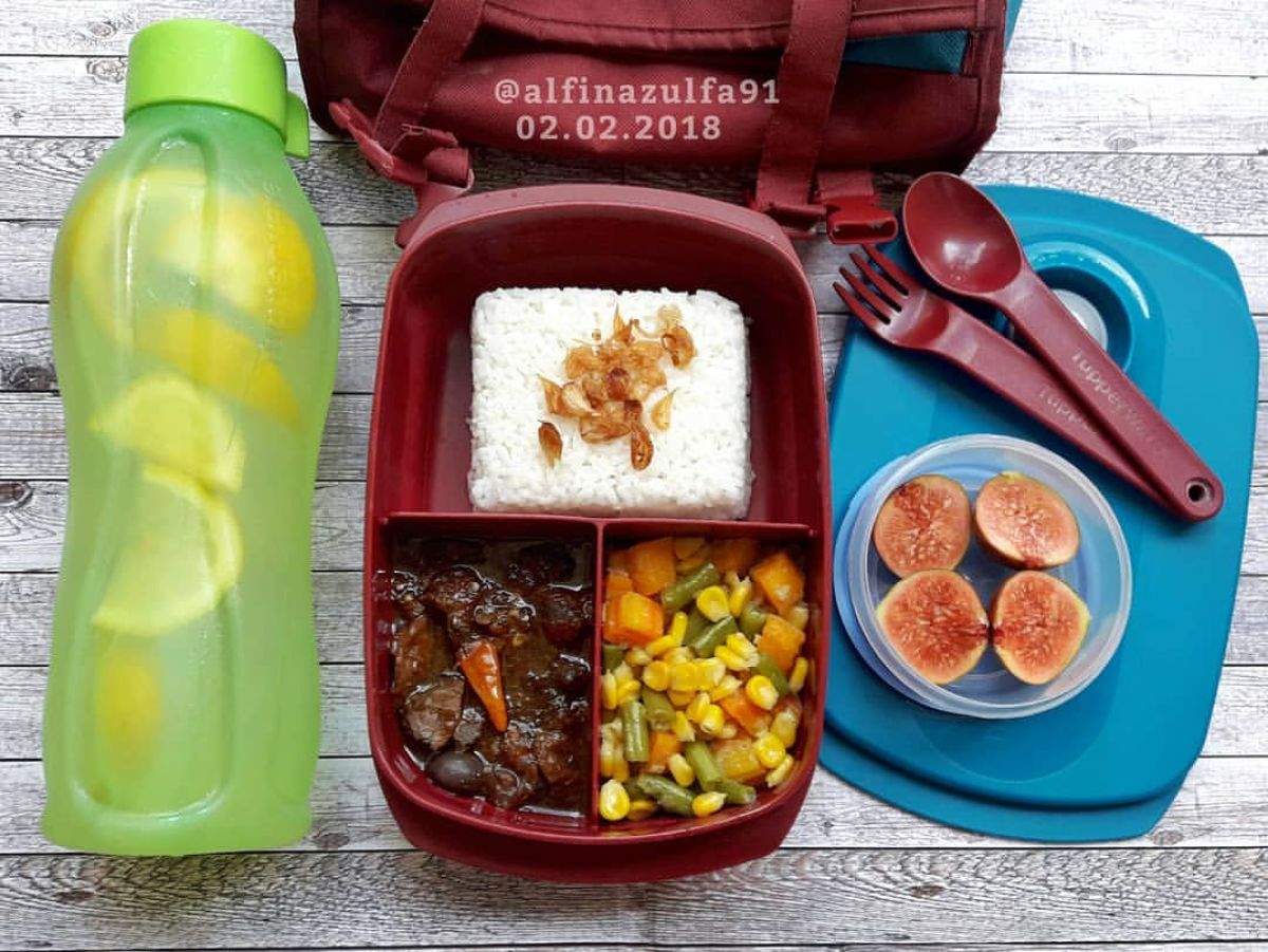 - Masak Nasi: Cuci 1 cup beras dan masak dengan 2 cup air hingga matang. Nasi yang pulen akan jadi alas utama di bekal kamu.