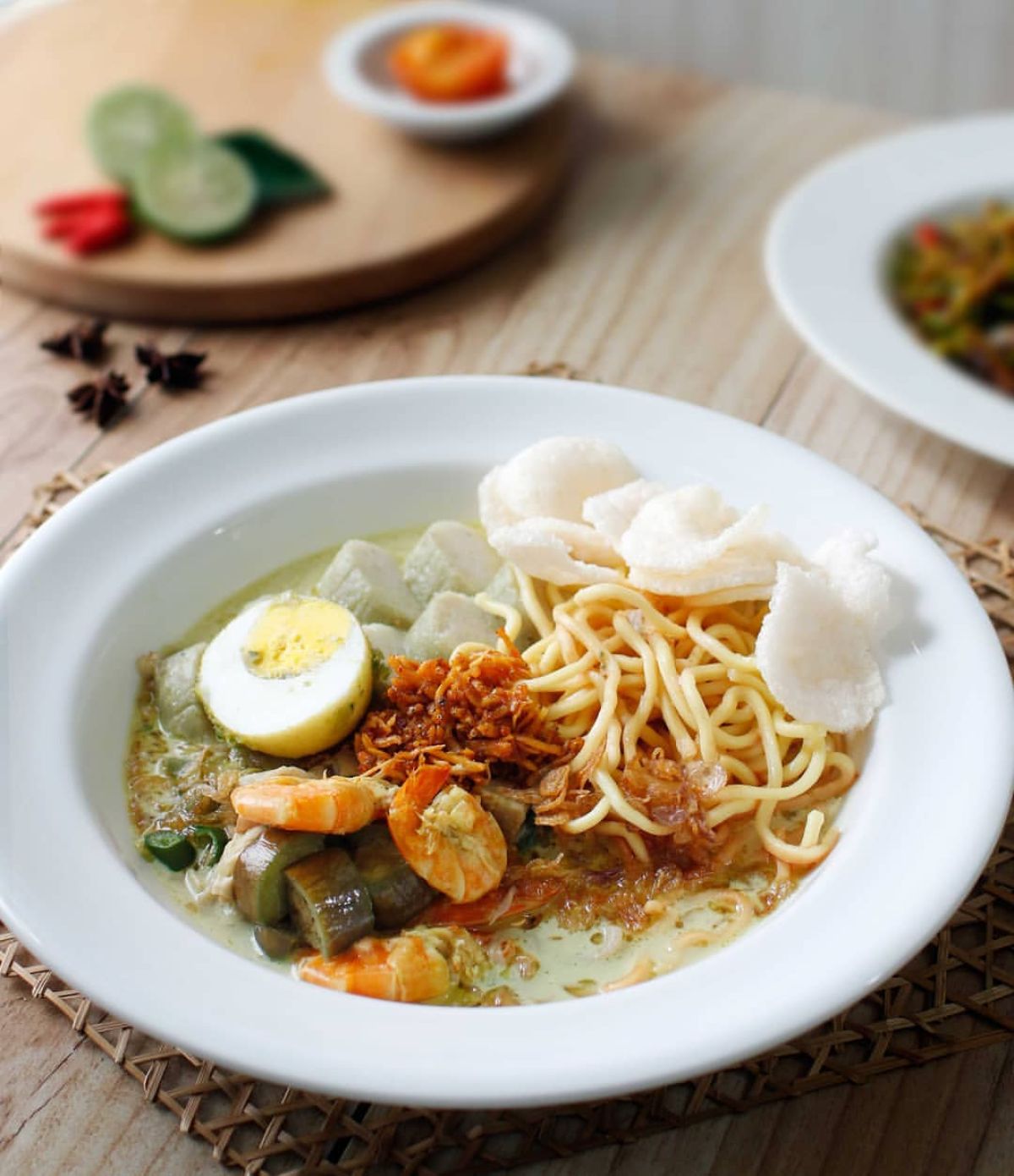 - Siapkan piring, letakkan lontong, tambahkan mie, lalu siram dengan kuah santan dan sayur. Lengkapi dengan sambal goreng teri, telur balado, taburi bawang goreng, dan kerupuk. Sajikan panas-panas.
