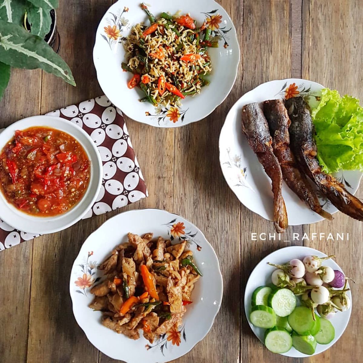 - Penyajian: Sajikan ikan lele goreng dengan tumis tempe, tumis kacang panjang, sambel terasi, dan lalapan segar.