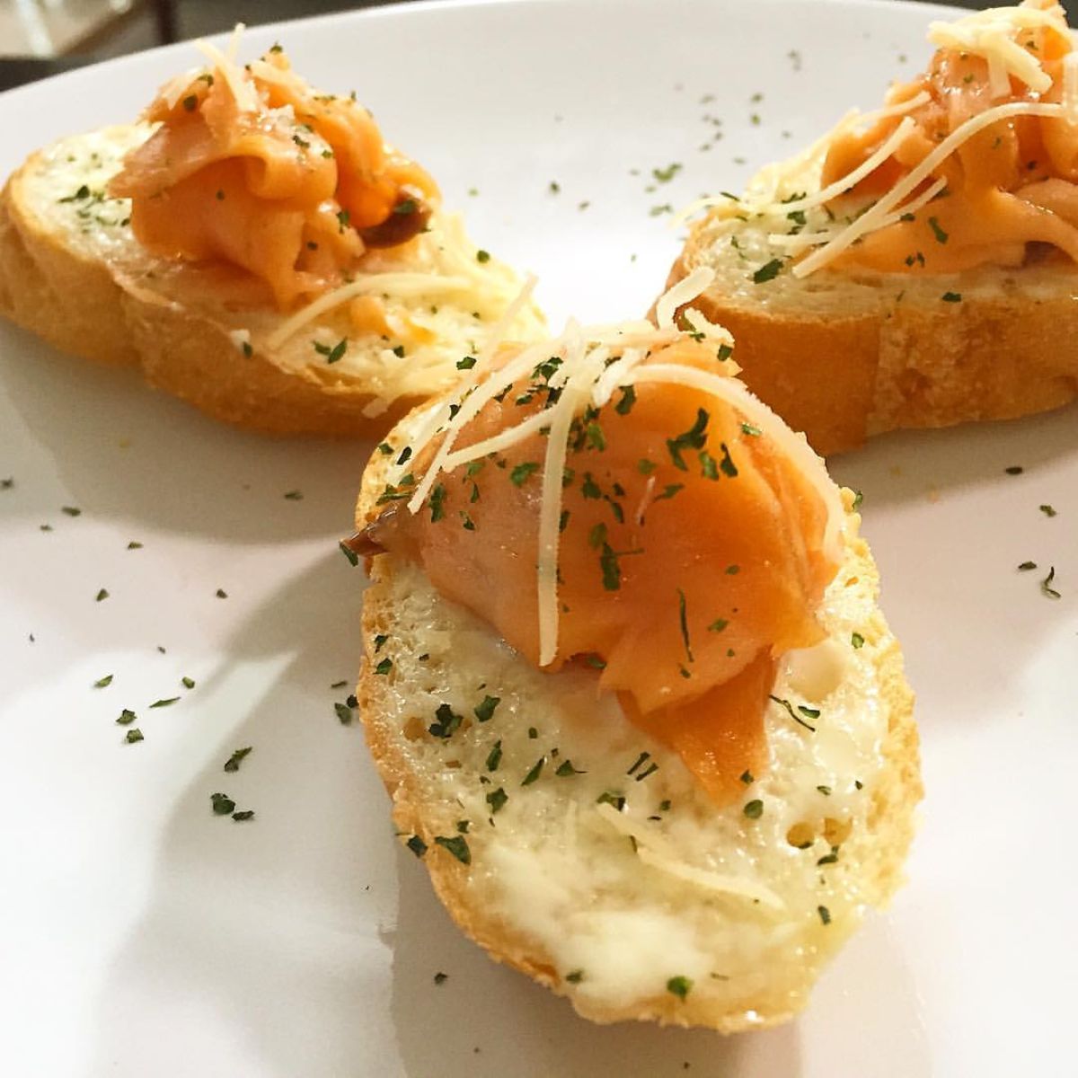 Bruschetta adalah hidangan asal Italia yang sangat populer sebagai appetizer atau cemilan. Biasanya terbuat dari roti bakar yang dilengkapi dengan berbagai topping. Hidangan ini mencerminkan tradisi kuliner Italia yang sederhana namun kaya rasa. Dengan menambahkan salmon asap, kita mengenalkan elemen baru yang berasal dari tradisi kuliner Skandinavia, di mana ikan asap adalah makanan umum yang disajikan dengan roti. Campuran ini menciptakan rasa unik yang disukai oleh banyak orang.