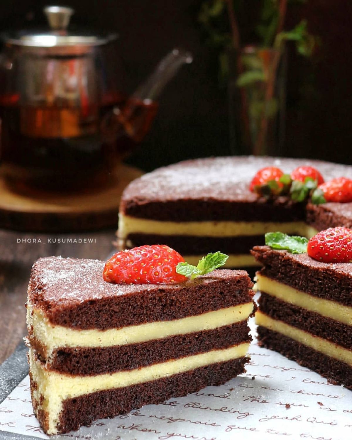 - Lelehkan mentega dan dark cooking chocolate dengan cara ditim, jangan sampai mendidih. Dinginkan hingga suhu ruang.