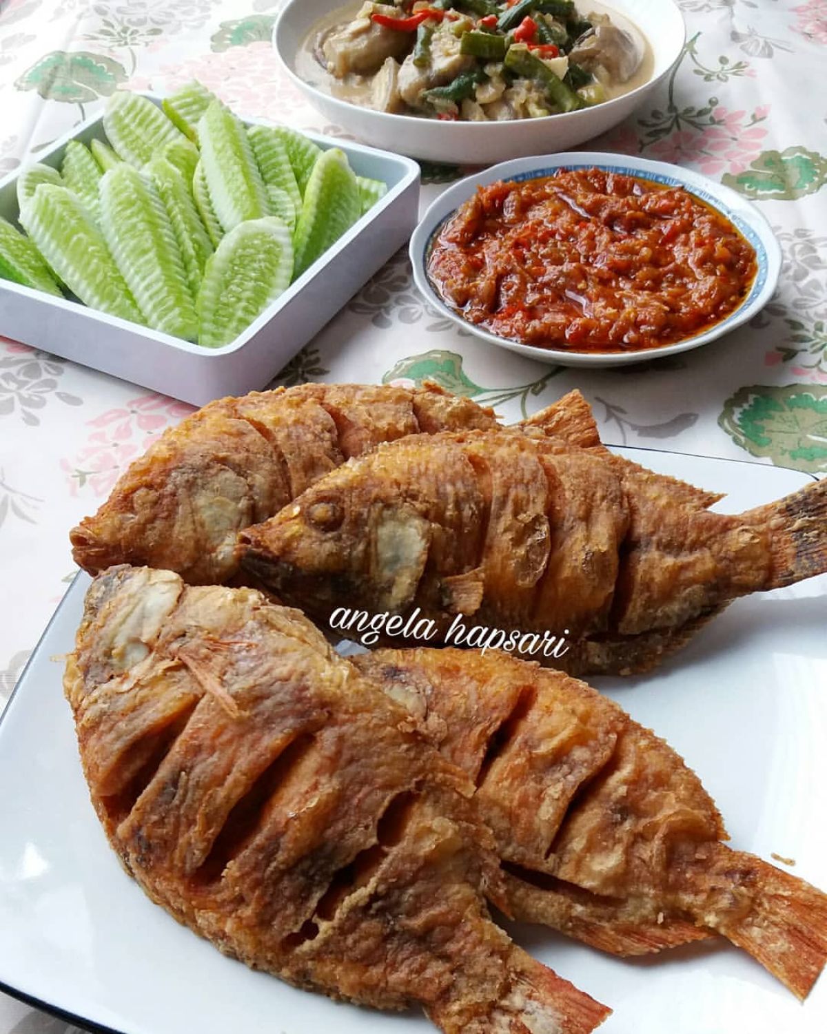 2. Menggoreng Ikan: Panaskan minyak dalam wajan. Setelah minyak panas, goreng ikan nila hingga kuning keemasan. Sisihkan.