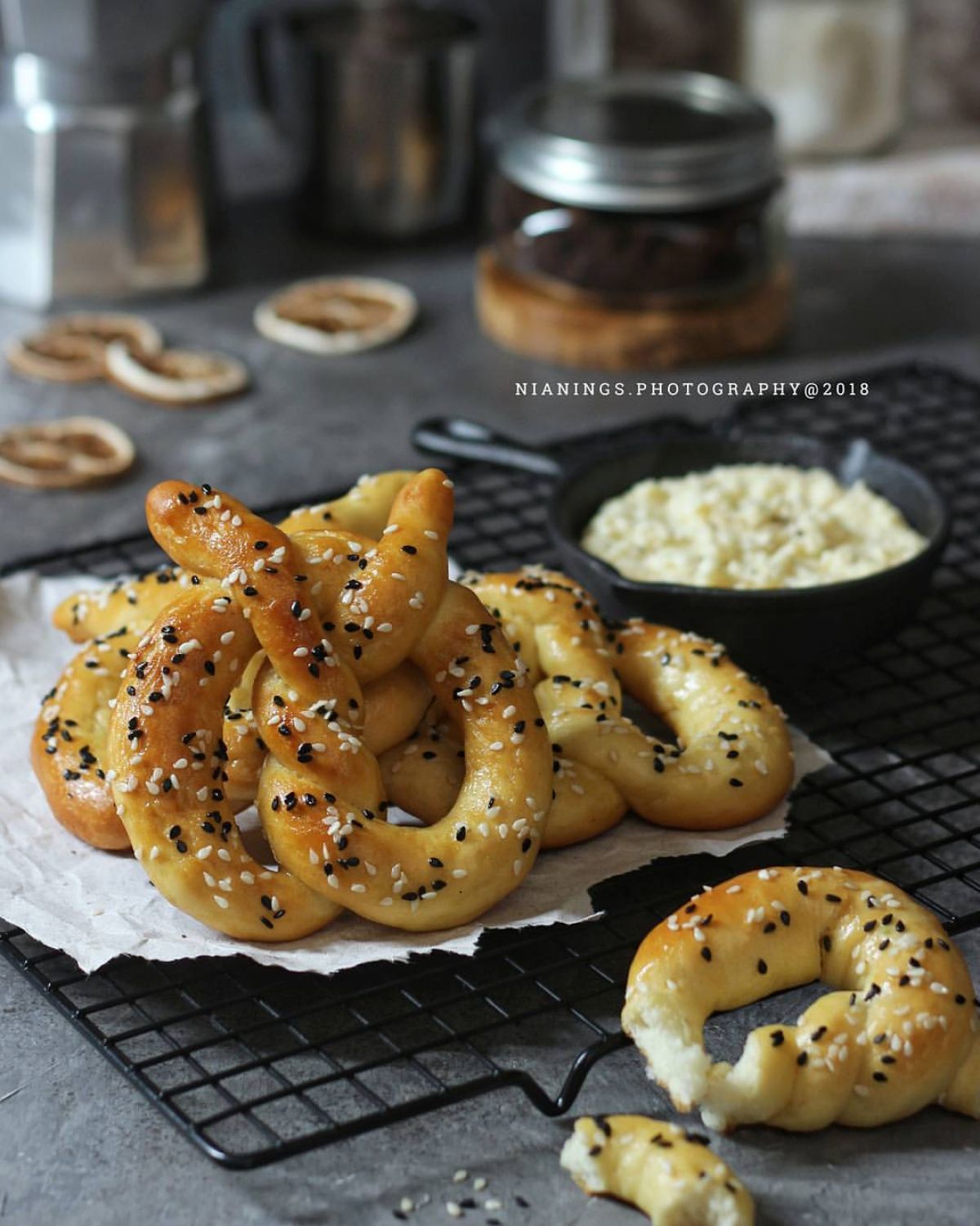 Pretzel adalah camilan khas Jerman yang terkenal dengan bentuknya yang unik. Ini adalah adonan yang dimasak dengan cara direbus dan kemudian dipanggang, menciptakan tekstur luar yang renyah dan dalam yang lembut. Penyajian pretzel dengan saus keju membuatnya semakin lezat. Mari kita buat pretzel gurih ini bersama!